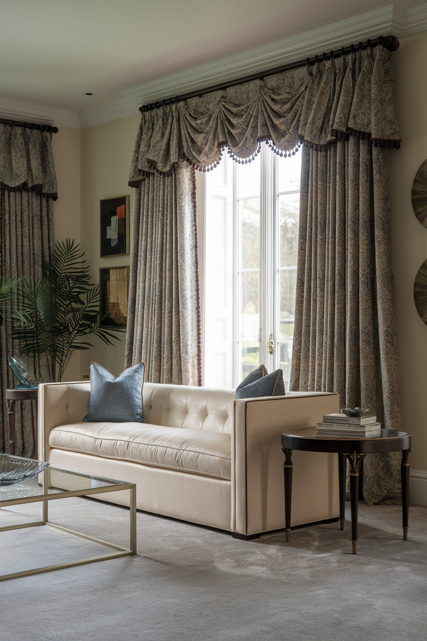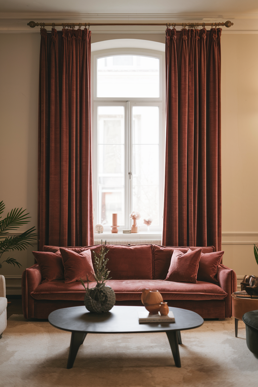 Curtains do more than just provide privacy; they also contribute to the overall warmth and coziness of a room. Opt for plush, heavy curtains that help insulate your space, keeping the warmth in during the colder months. Fabrics like velvet, linen, or cotton add texture and depth to your space while creating a softer, more inviting atmosphere. Choose curtains that complement your room’s color scheme, adding richness and warmth to the space. When closed, they create a sense of intimacy, and when open, they allow natural light to flood the room, giving it a fresh, airy feel. Make sure your curtains are long enough to touch the floor, adding a sophisticated, cozy touch to the room’s overall vibe.