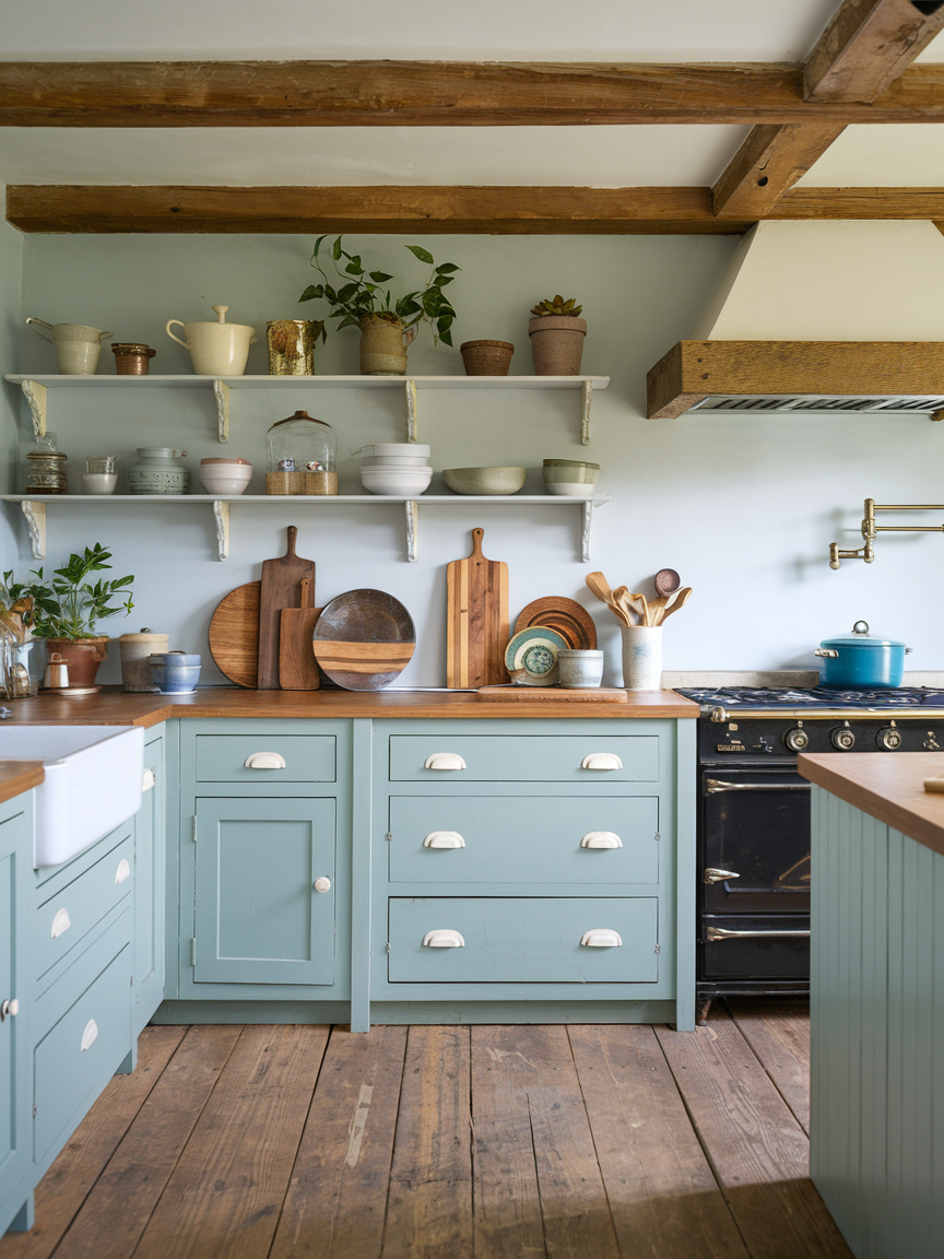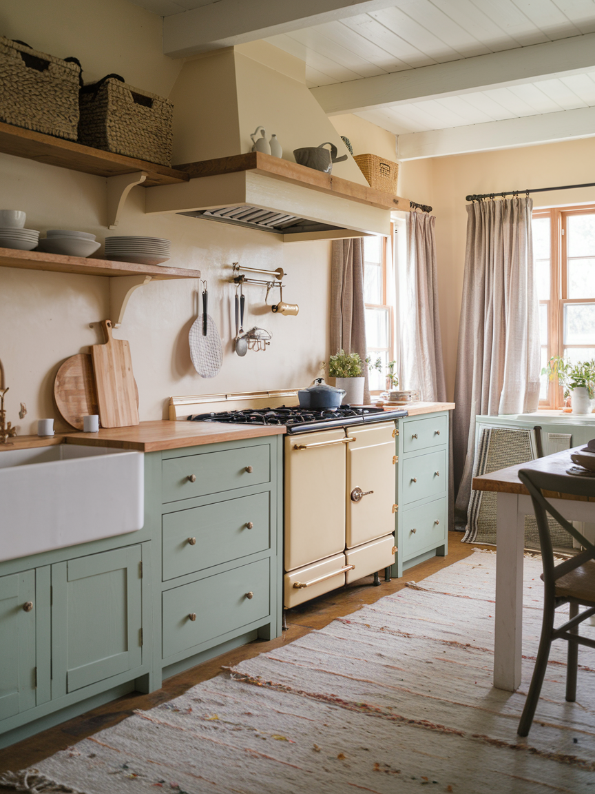 Imagine open shelves filled with well-loved dishes, vintage-inspired hardware that tells a story, and natural wood accents that bring comfort into every corner. Picture soft, muted colors paired with touches of texture like exposed beams, farmhouse sinks, and patterned textiles that make your space feel lived-in yet beautifully curated. It’s the kind of kitchen that makes you actually want to spend time cooking, baking, and creating memories instead of just rushing to reheat leftovers.