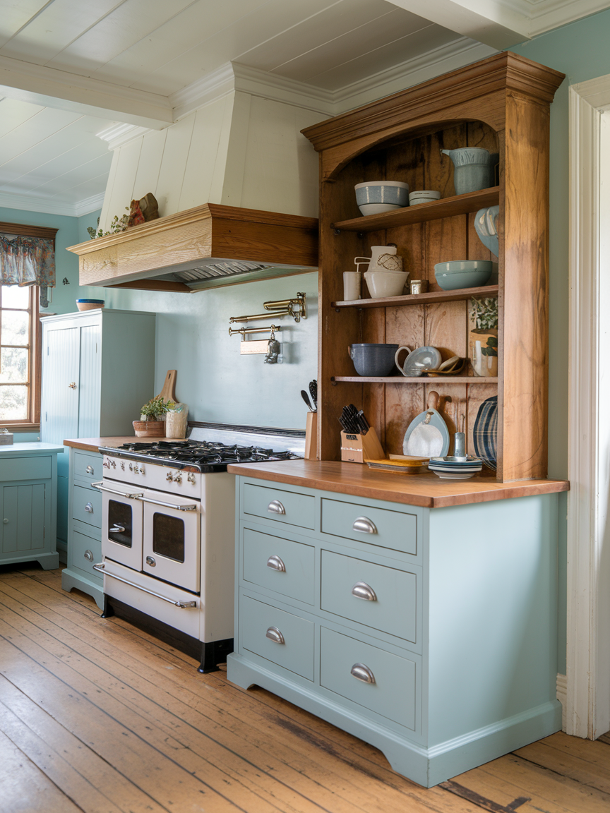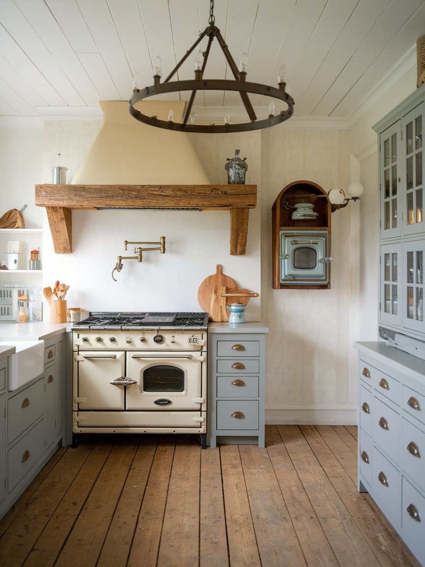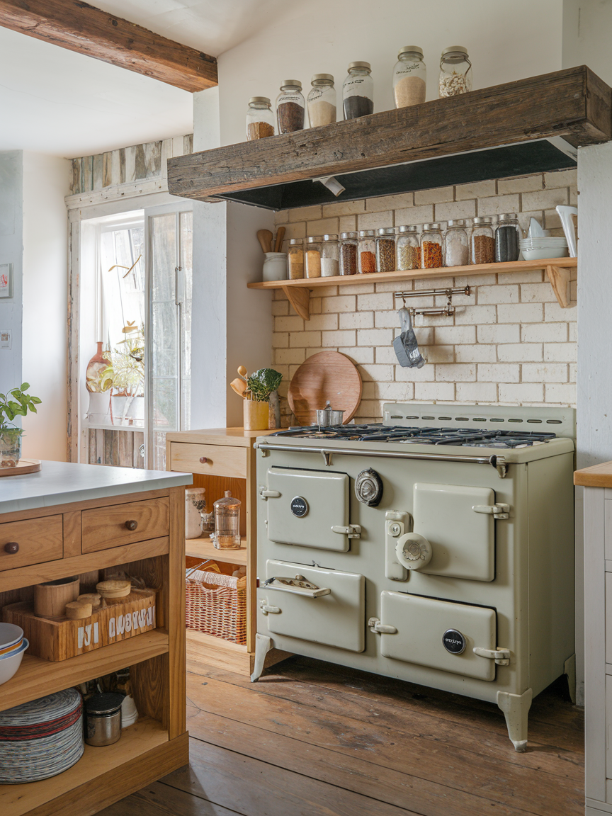 Adding retro or vintage-inspired appliances is a surefire way to infuse charm into a cottage kitchen. I’m talking pastel-colored fridges, old-school stoves with modern functionality, or charming toasters that make your morning coffee routine more enjoyable. These appliances are not just for looks; they are practical and often surprisingly efficient. I personally love seeing a pop of color from a vintage fridge, it becomes the centerpiece of the room and sets a cheerful, welcoming tone. Cottage kitchens are all about personality, so let your appliances shine as part of your design story. These pieces add nostalgic warmth while still supporting modern-day cooking needs.