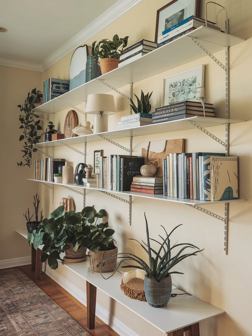 Open shelving is a stylish and practical solution for keeping an entry hallway organized while still looking decorative. Shelves provide space to store baskets, books, plants, or small accessories without making the area feel heavy or crowded. When styled carefully, open shelves can become part of the design instead of just storage. Using matching baskets or containers helps keep the space tidy while adding texture and warmth. Open shelving also allows you to change decorations easily, so the hallway can feel fresh and updated whenever you want without needing a full redesign.