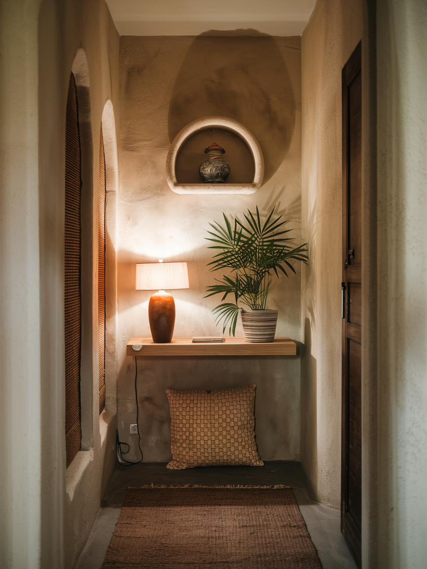 Using a mix of textures is one of the best ways to make an entry hallway feel rich, warm, and thoughtfully designed. Combining materials like wood, metal, fabric, glass, and woven fibers adds depth and keeps the space from looking flat. For example, a wooden console table, a metal lamp, a soft rug, and a woven basket can work together to create a balanced and cozy look. Texture is especially important when using neutral colors because it keeps the design interesting without needing bright shades. A hallway with layered textures feels comfortable, stylish, and full of character.