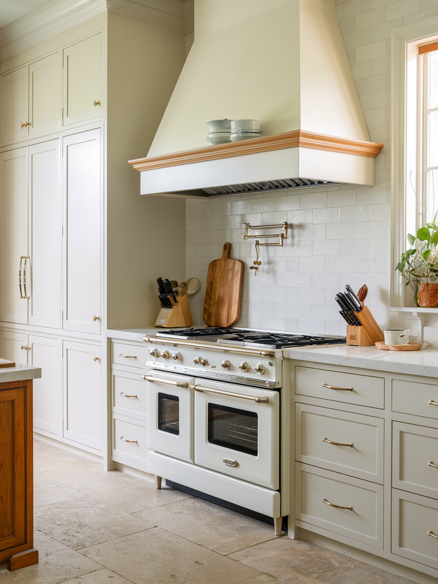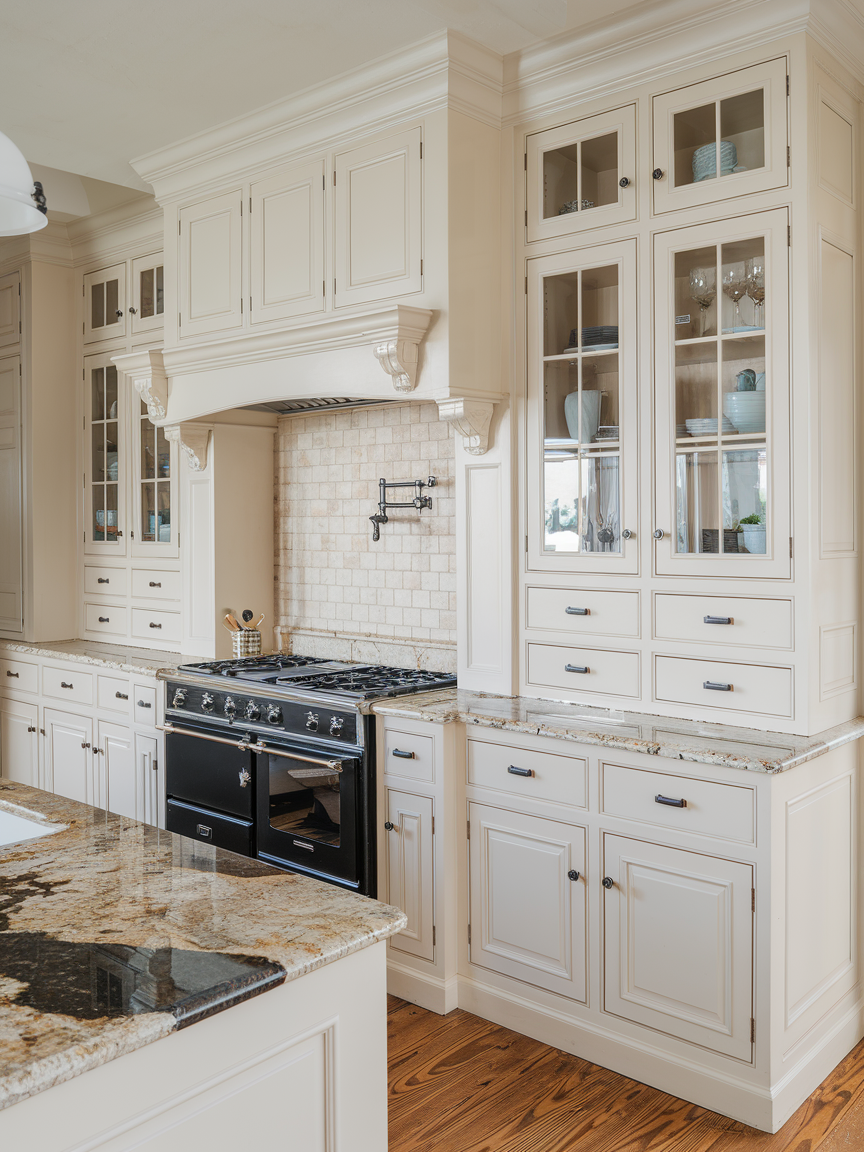 Adding crown molding to tall cabinets enhances elegance and draws the eye upward, making the kitchen feel more spacious. I like how this touch combines classic style with storage efficiency. Cooking feels a little more luxurious in a space that balances practicality with decorative details.