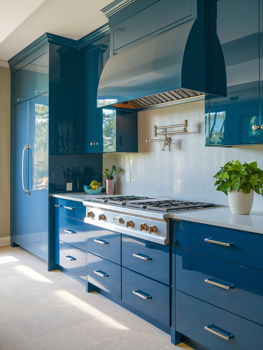 High-gloss cabinets reflect light and make kitchens feel bigger and brighter. They’re ideal for modern, minimalist spaces where smooth surfaces enhance the sleek aesthetic. IMO, they also give the kitchen a futuristic vibe, making even mundane cooking tasks feel a little more glamorous. Cleaning is straightforward too—spills wipe off quickly, and surfaces stay shiny with minimal effort. Cooking in a high-gloss kitchen feels polished, energetic, and efficient, which is perfect if you love a visually striking space that still works hard for you.