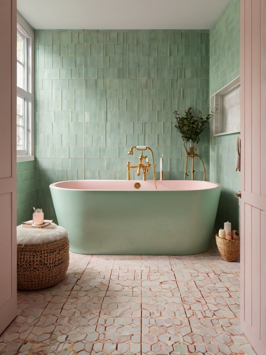 Pastel colors work beautifully in a variety of design styles, from modern minimalism to vintage charm. Subtle pastel tiles can add character without overwhelming the space, while pastel-painted vanities or accent walls introduce a playful yet sophisticated touch. Combining pastel shades with white or neutral elements helps maintain balance, while natural materials like wood and rattan enhance warmth and texture.