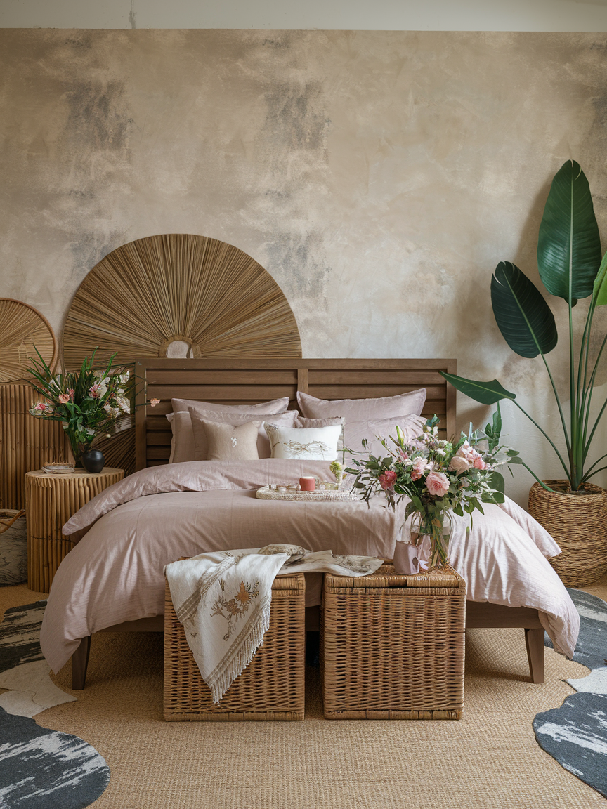 Incorporating plants, flowers, or natural materials brings life and freshness to a bedroom. Fresh blooms in vases, potted greenery, or wooden furniture add warmth and vibrancy. Nature-inspired textures like wicker, rattan, or stone enhance a cozy and romantic atmosphere. These elements not only beautify the space but also improve air quality and overall well-being. Including natural touches creates a serene and intimate environment, reminding couples of the calmness and harmony found in nature. It’s a simple way to make your bedroom feel alive, inviting, and connected to the outdoors.