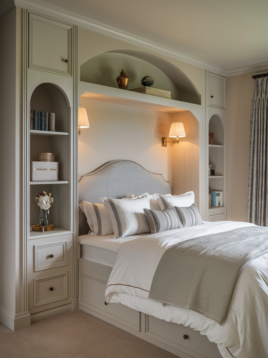 Clutter can ruin a romantic atmosphere, so smart storage is essential. Built-in shelves, under-bed drawers, and multi-functional furniture help keep belongings organized and out of sight. Storage solutions that blend seamlessly with your decor maintain a clean, calm, and intimate environment. A tidy bedroom allows you to focus on relaxation and quality time with your partner rather than distractions from mess. Built-in storage also maximizes small spaces, making even compact rooms feel cozy and spacious. Prioritizing storage is a practical yet stylish step toward creating a serene romantic retreat.
