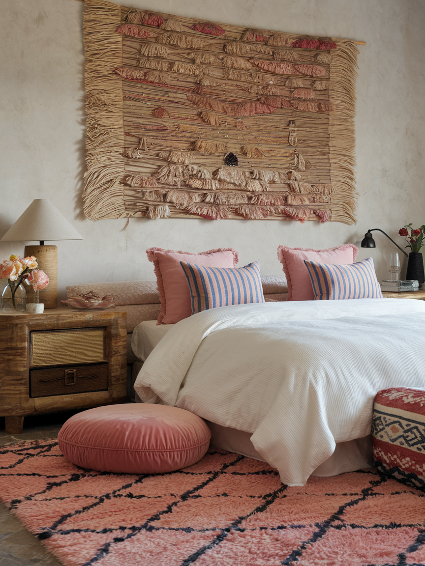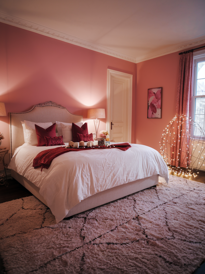 Area rugs provide warmth and comfort underfoot while defining spaces within your bedroom. Choose soft, plush rugs that feel cozy and inviting. Layering rugs of different textures or patterns adds depth and interest. A well-placed rug can anchor your bed, delineate a seating area, or simply make the floor more pleasant. Rugs are an easy way to soften hard flooring and create a romantic, intimate atmosphere. They add a tactile element that enhances comfort and makes the bedroom feel luxurious without overwhelming the space.