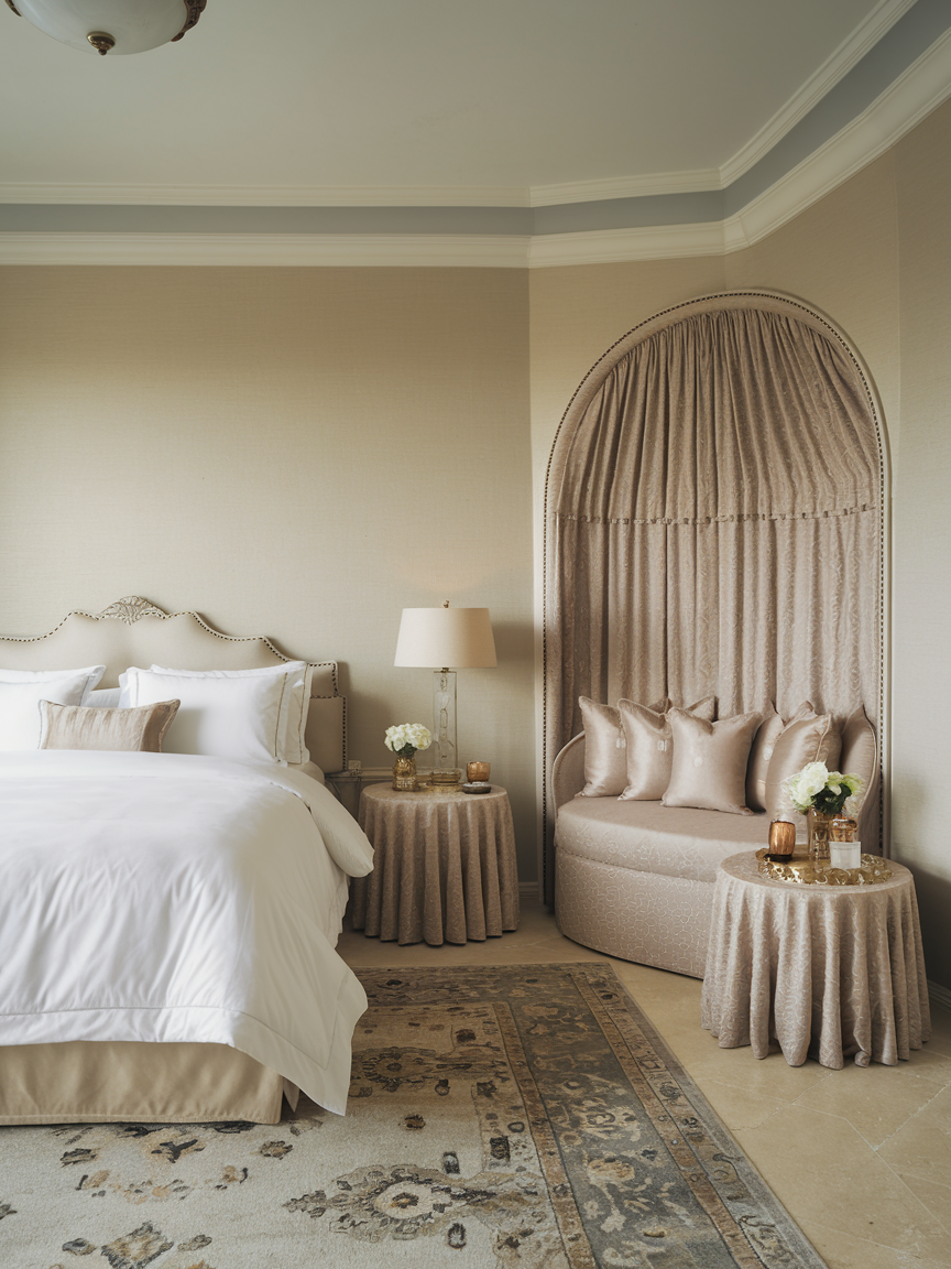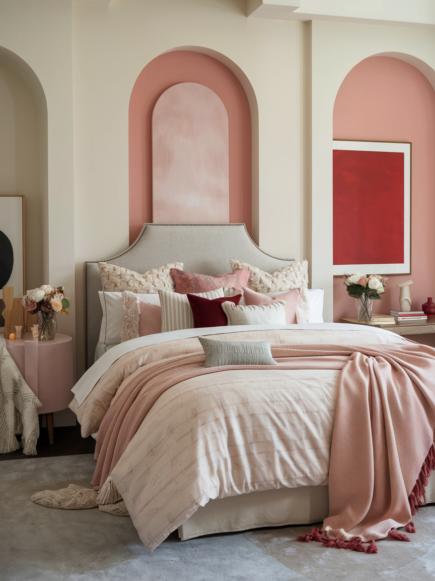 Soft, neutral colors create a serene and romantic atmosphere, while pops of color add personality. Shades like creams, taupes, and pastels form a calming backdrop, perfect for a love nest. Introducing accents in blush, deep red, or rich jewel tones through pillows, throws, or artwork injects warmth and energy. This balance keeps the room feeling cozy without overwhelming the senses. A thoughtful color palette allows couples to create a tranquil, intimate environment that encourages relaxation and connection, making the bedroom feel like a true romantic retreat.