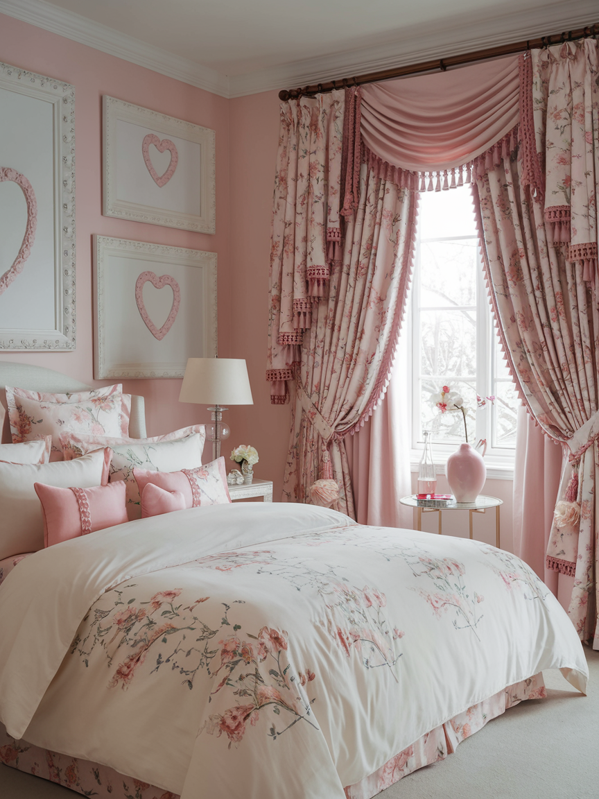 Layering curtains is both stylish and functional, providing privacy while softening natural light. Sheer curtains diffuse sunlight for a gentle glow, creating a dreamy atmosphere, while heavier drapes block light when you need intimacy or rest. Coordinating fabrics with your bedding and furniture brings the room together visually, enhancing the romantic vibe. Layered curtains also add texture and depth, making the space feel luxurious and well-designed. By controlling light and privacy, this feature supports relaxation and fosters an intimate environment, turning your bedroom into a sophisticated, cozy, and romantic sanctuary.