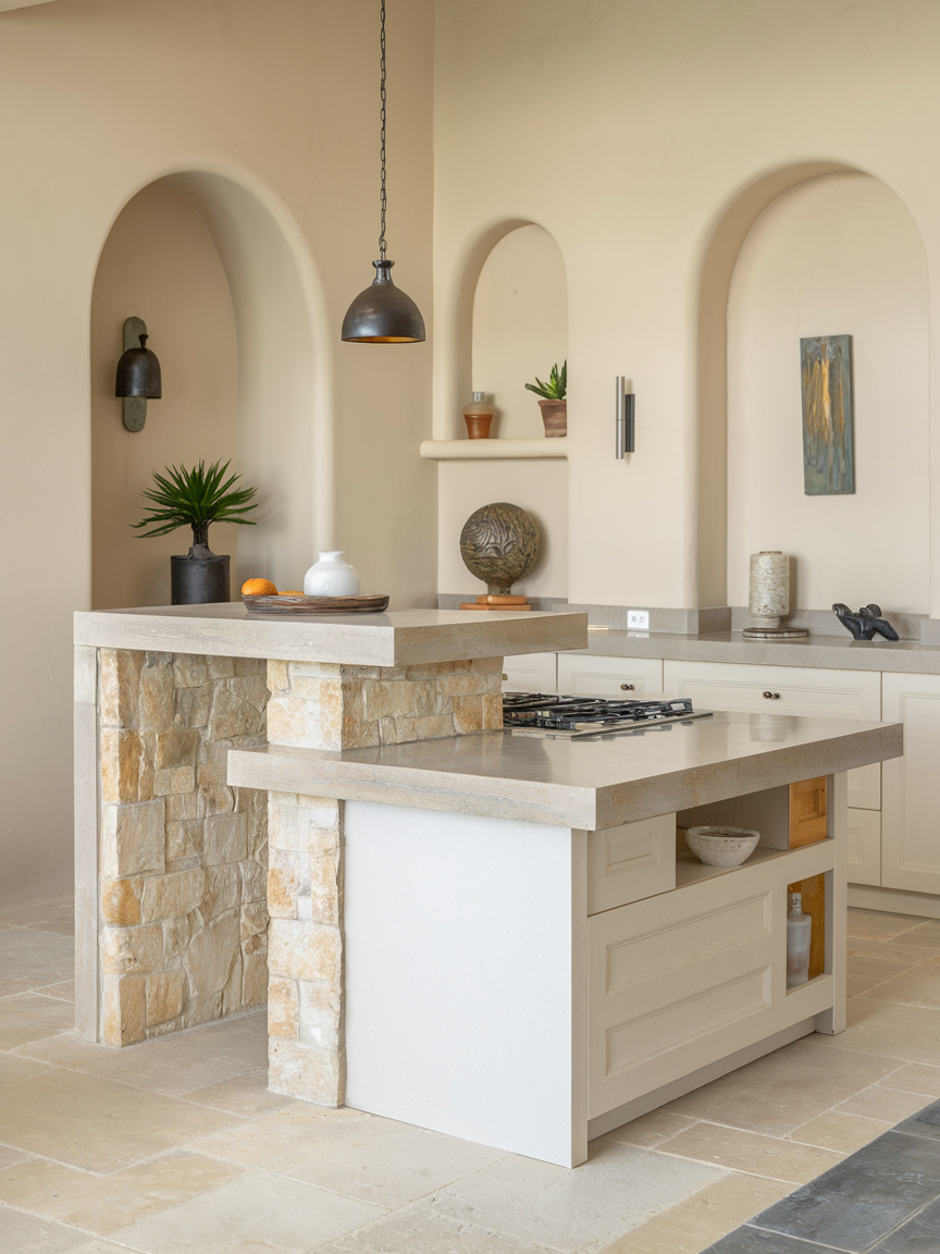 Concrete islands bring a bold, industrial edge to your kitchen while offering exceptional durability. Their textured surface adds a modern and tactile quality that contrasts beautifully with softer materials. With proper finishing, concrete can look both sleek and sophisticated. It’s a strong design choice that combines practicality with a distinctive aesthetic.