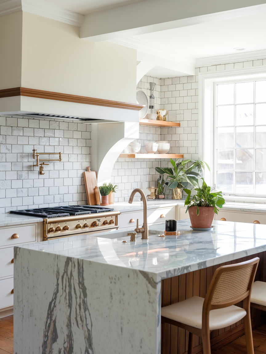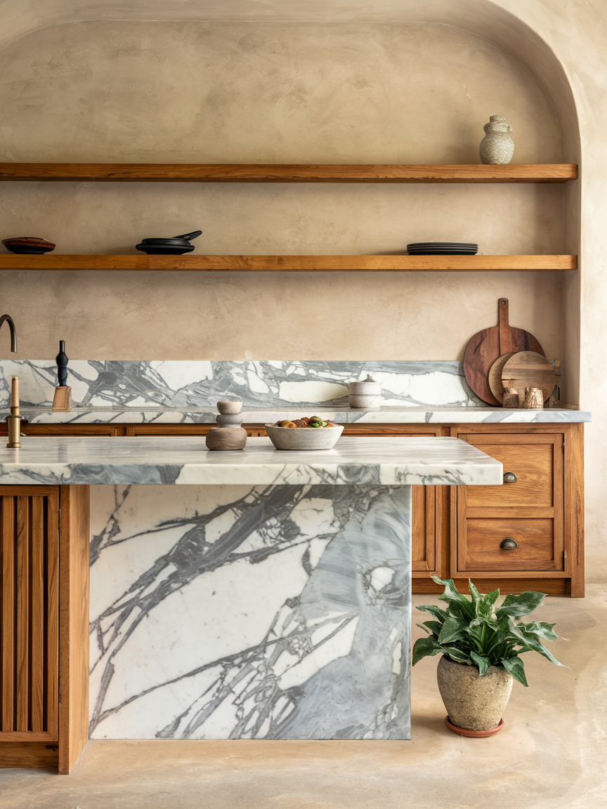 Combining marble and wood creates a beautiful balance between elegance and warmth. The marble provides a sleek and durable surface, while the wood adds softness and texture. This pairing results in a timeless design that feels both sophisticated and inviting. It’s an excellent choice for those who want a kitchen that looks refined without feeling cold or overly formal.