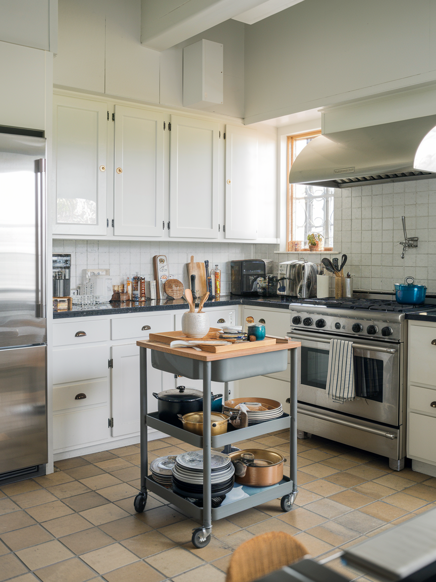 A rolling kitchen island offers unmatched flexibility, making it ideal for both small and large spaces. You can easily move it to create additional prep space when cooking or reposition it to open up the room when entertaining. Many designs include shelves or drawers for extra storage, making them incredibly practical. This adaptability allows your kitchen to function more efficiently while maintaining a stylish and dynamic layout that can evolve with your needs.