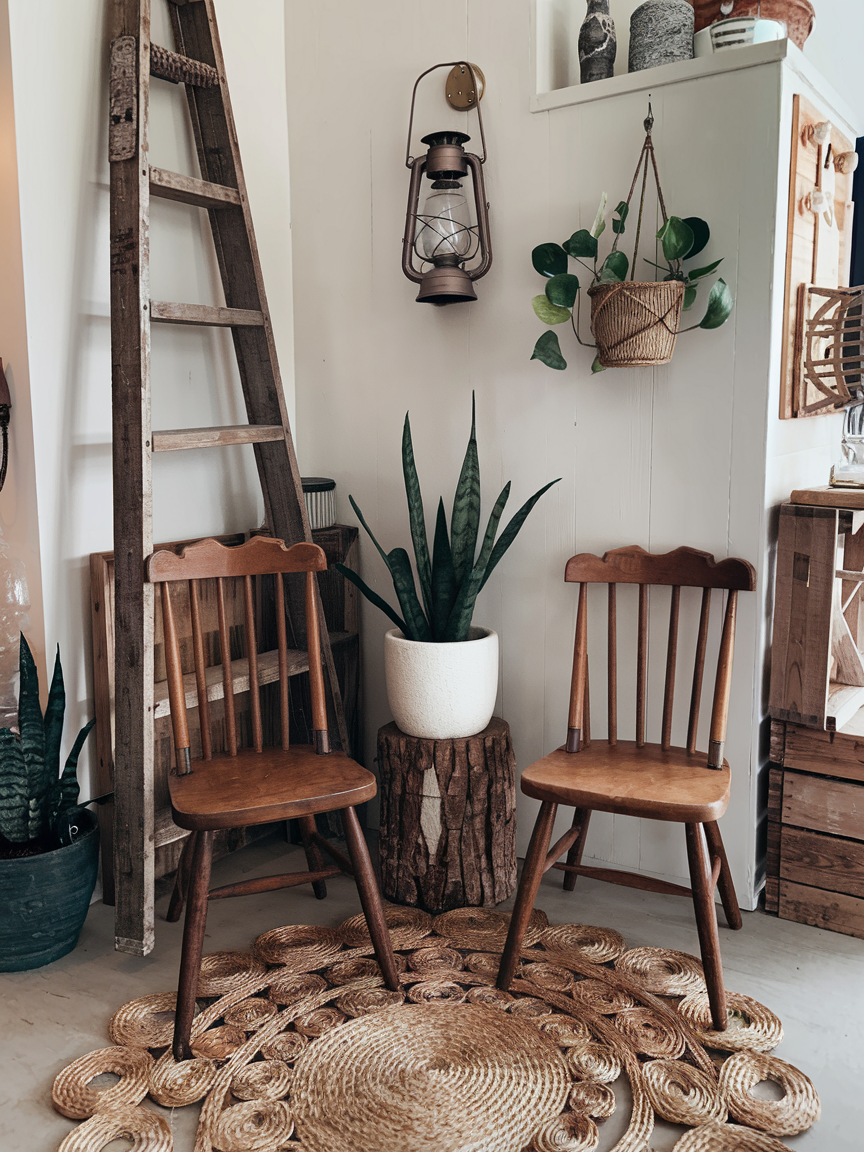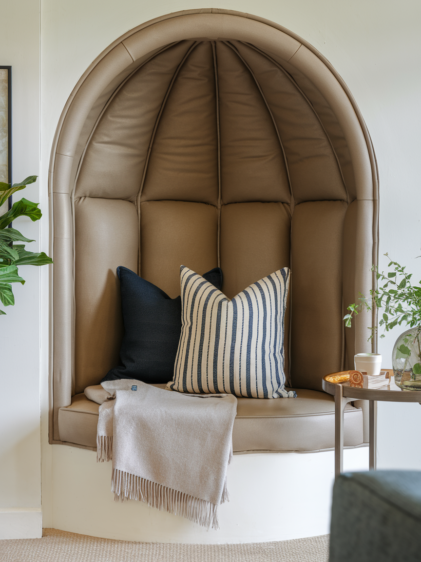 Bring warmth and character to your nook with rustic elements such as reclaimed wood, woven textures, and earthy tones. A comfortable chair paired with a wooden side table and a textured throw creates a grounded, natural feel. Add a lantern-style lamp or vintage-inspired décor to enhance the cozy aesthetic. This type of nook works beautifully in farmhouse, cottage, or traditional interiors where comfort and charm are key.
