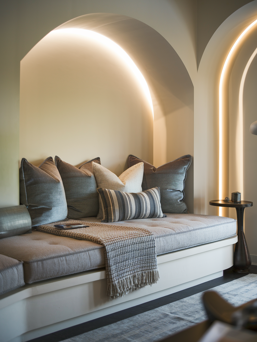 Comfortable seating, layered cushions, warm lighting, and small accent tables can make a nook feel both practical and stylish. Natural materials, neutral tones, and a few decorative elements such as plants, artwork, or shelving add character without overwhelming the space. Smart use of corners, windows, or underutilized areas allows you to maximize comfort while maintaining a balanced living room design.