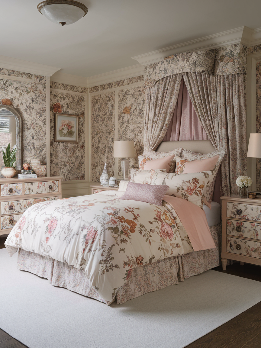 Floral patterns bring softness and a sense of elegance that perfectly suits traditional interiors. When used in muted or balanced tones, they enhance the room without feeling overwhelming. Incorporating florals through bedding, curtains, or wallpaper adds visual interest and a welcoming touch. Their enduring appeal ensures that the design remains timeless rather than trend-driven.