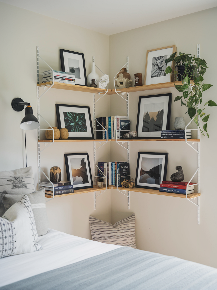 6. Floating Corner Shelves for Personalized Displays