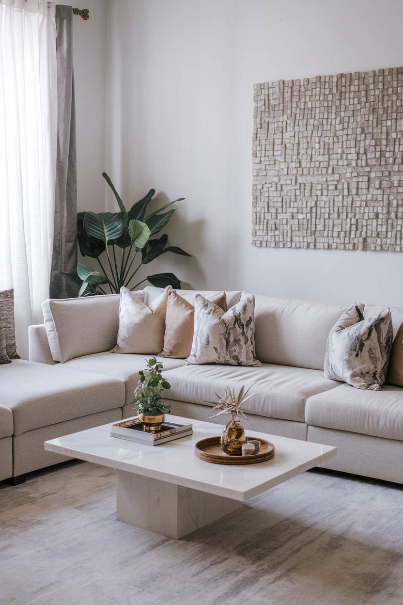 A neutral color palette is one of the easiest ways to create a high-end look without much effort. Choose soft shades of gray, beige, cream, or taupe for the walls and larger furniture pieces. These colors have a calming, refined quality and act as a perfect backdrop for pops of color in your decor. Neutral tones are timeless and versatile, giving your living room an elegant, cohesive feel. You can easily change up the look with accessories like throw pillows, rugs, and artwork.