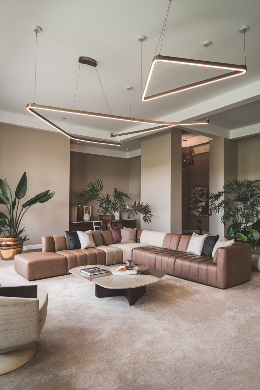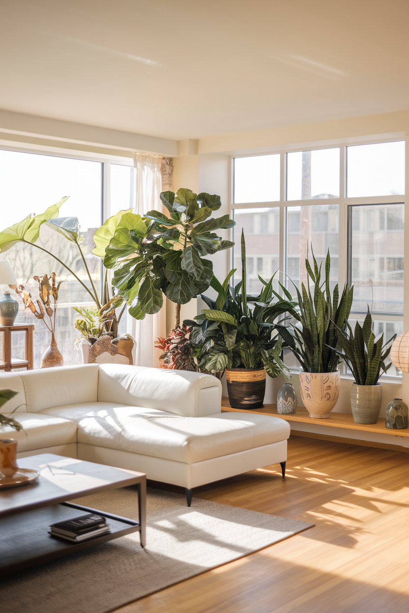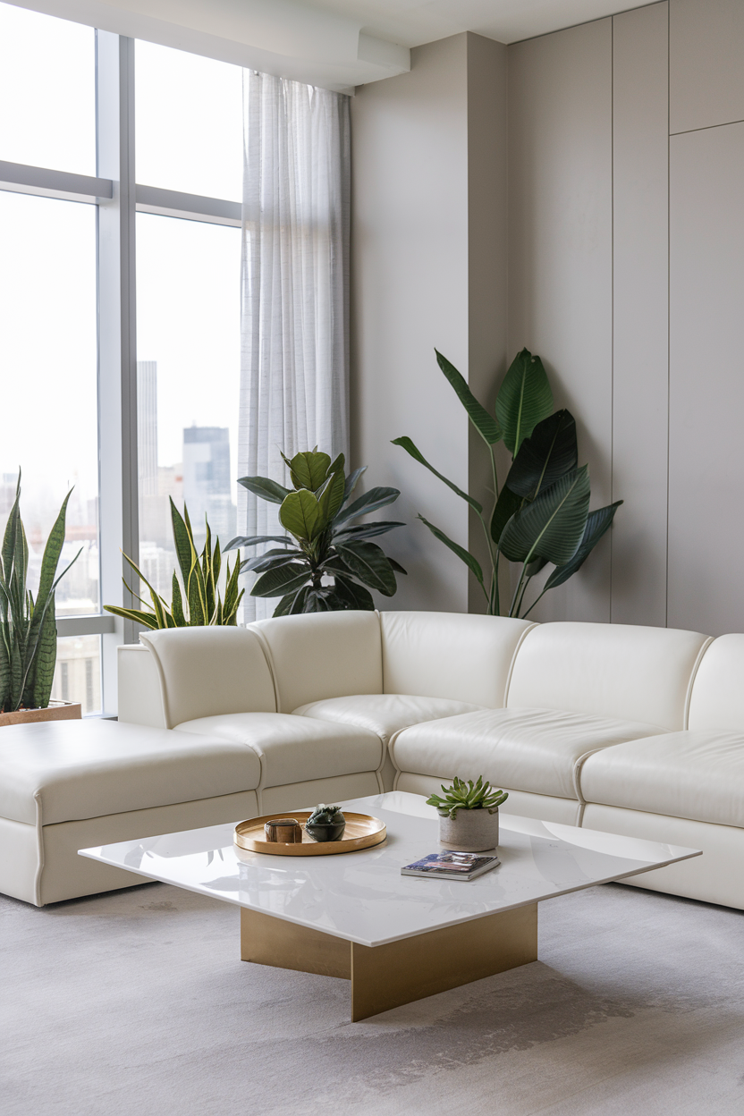 Indoor plants are a simple yet effective way to enhance the look of your living room. Large plants like fiddle-leaf figs, snake plants, or pothos bring a fresh, organic feel to the space while also contributing to a high-end aesthetic. Opt for sleek, modern planters made from materials like ceramic, stone, or metal to elevate the look even further. The presence of greenery adds a layer of richness and vitality to your room, making it feel more welcoming and luxurious.