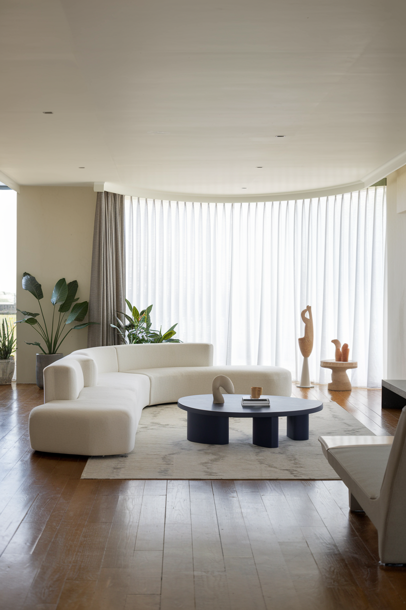 Sculptural decor pieces add a touch of elegance and sophistication to your living room. Look for modern vases, unique figurines, or decorative bowls made from materials like ceramic, glass, or stone. These pieces act as statement items that bring personality and a designer-inspired touch to the space. Display them on your coffee table, mantle, or bookshelves to add a curated and polished look to the room. Sculptural accessories help create a gallery-like atmosphere, making your living room feel more high-end.