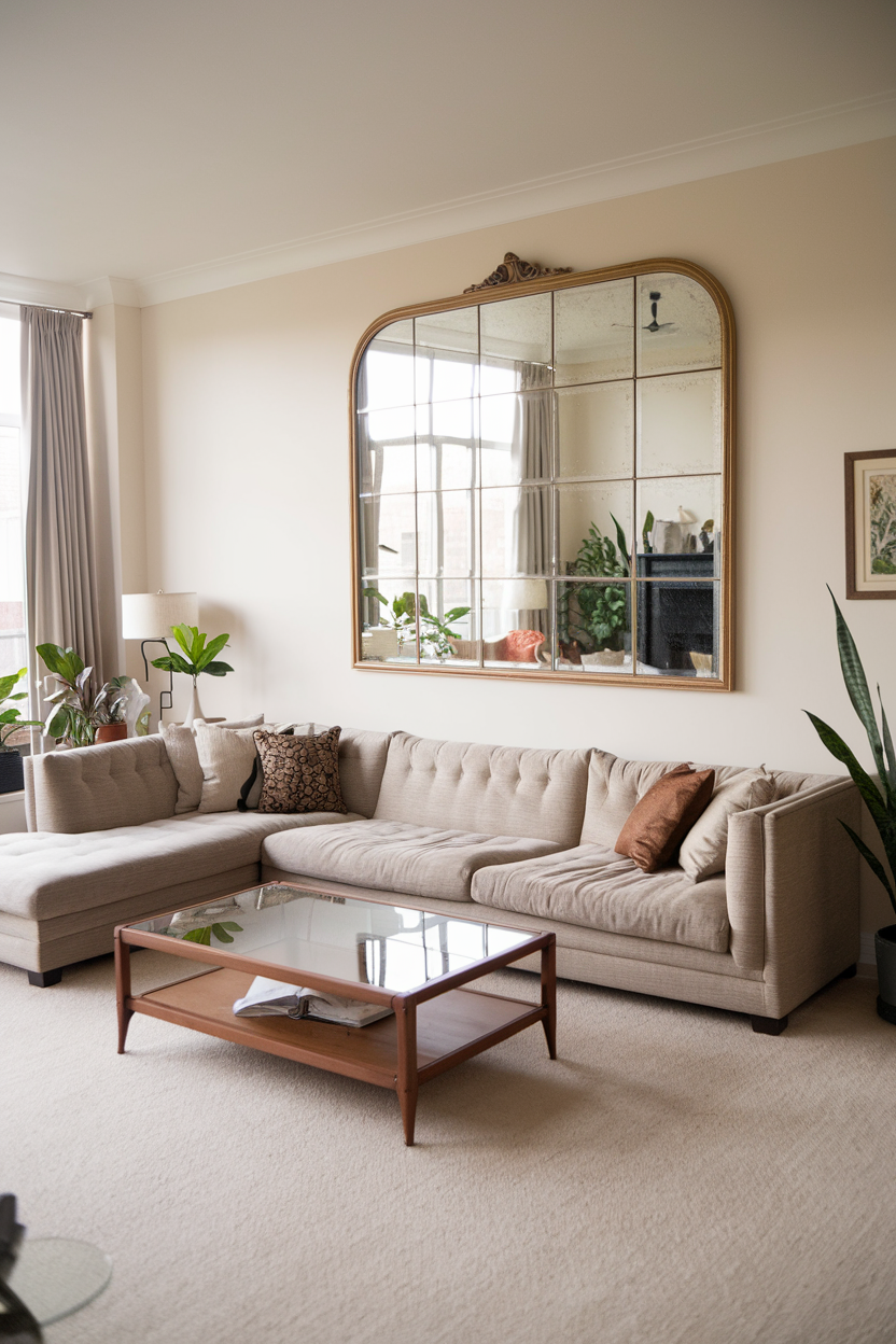 Mirrors are versatile and can make your living room appear more spacious, bright, and elegant. Opt for a large, statement mirror with a sleek and stylish frame to draw attention and reflect natural light. A round mirror or one with geometric angles can add a modern flair, while mirrors with gold, black, or metallic finishes give a sense of luxury. Not only does a well-placed mirror make a bold design statement, but it also creates a feeling of openness and sophistication in the room.