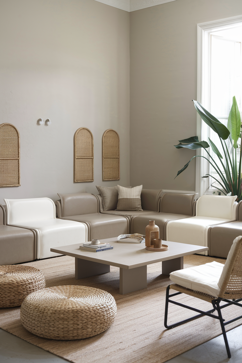 Textural elements like woven baskets, rattan furniture, or woven throw blankets bring depth and dimension to your living room. These pieces evoke a feeling of luxury and warmth, and work particularly well when paired with other high-end elements like velvet cushions or leather chairs. The interplay of textures helps to create a more interesting and stylish atmosphere that feels both elevated and inviting.