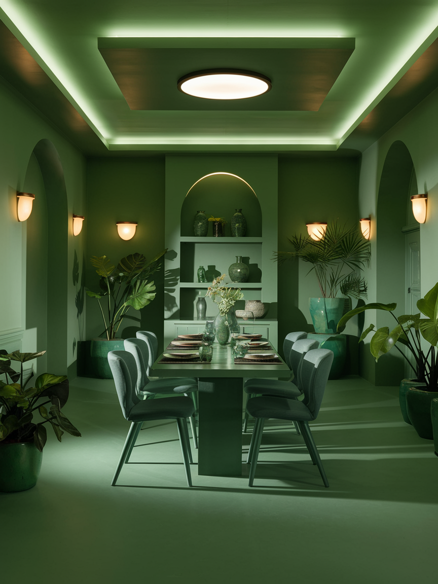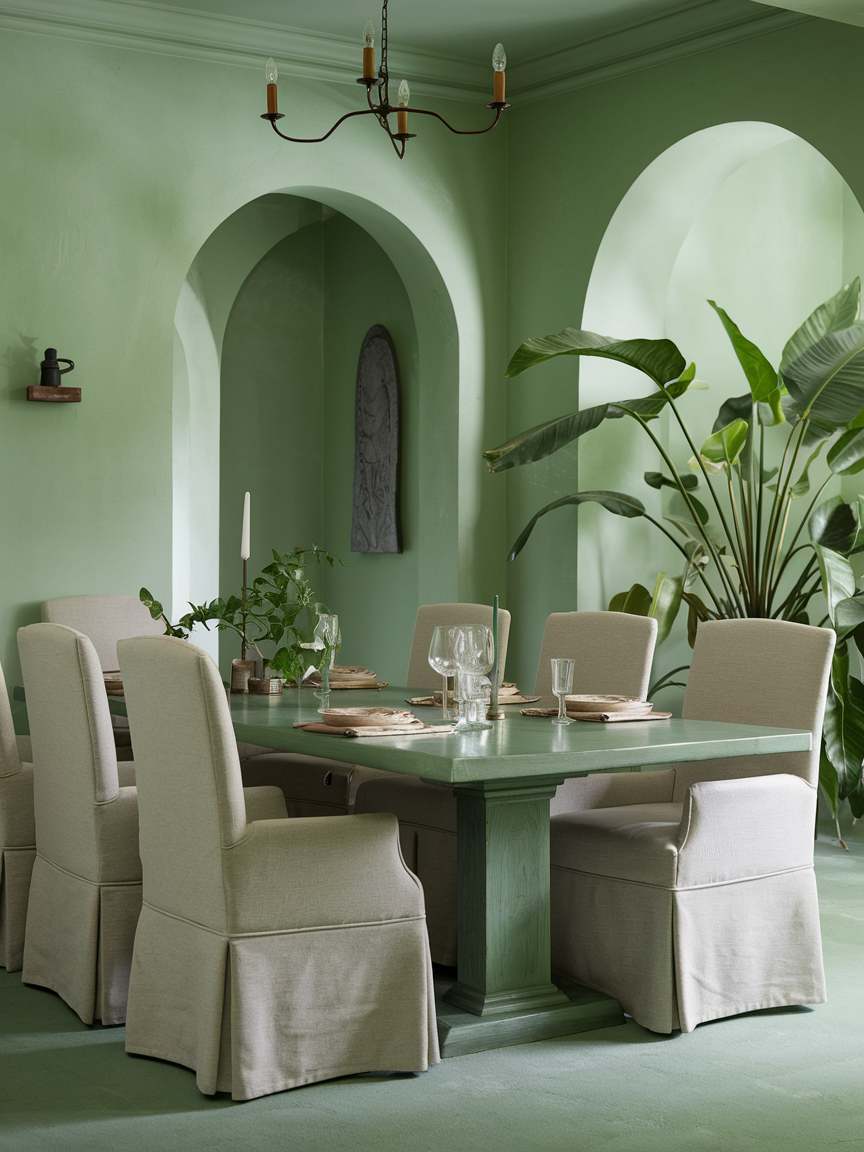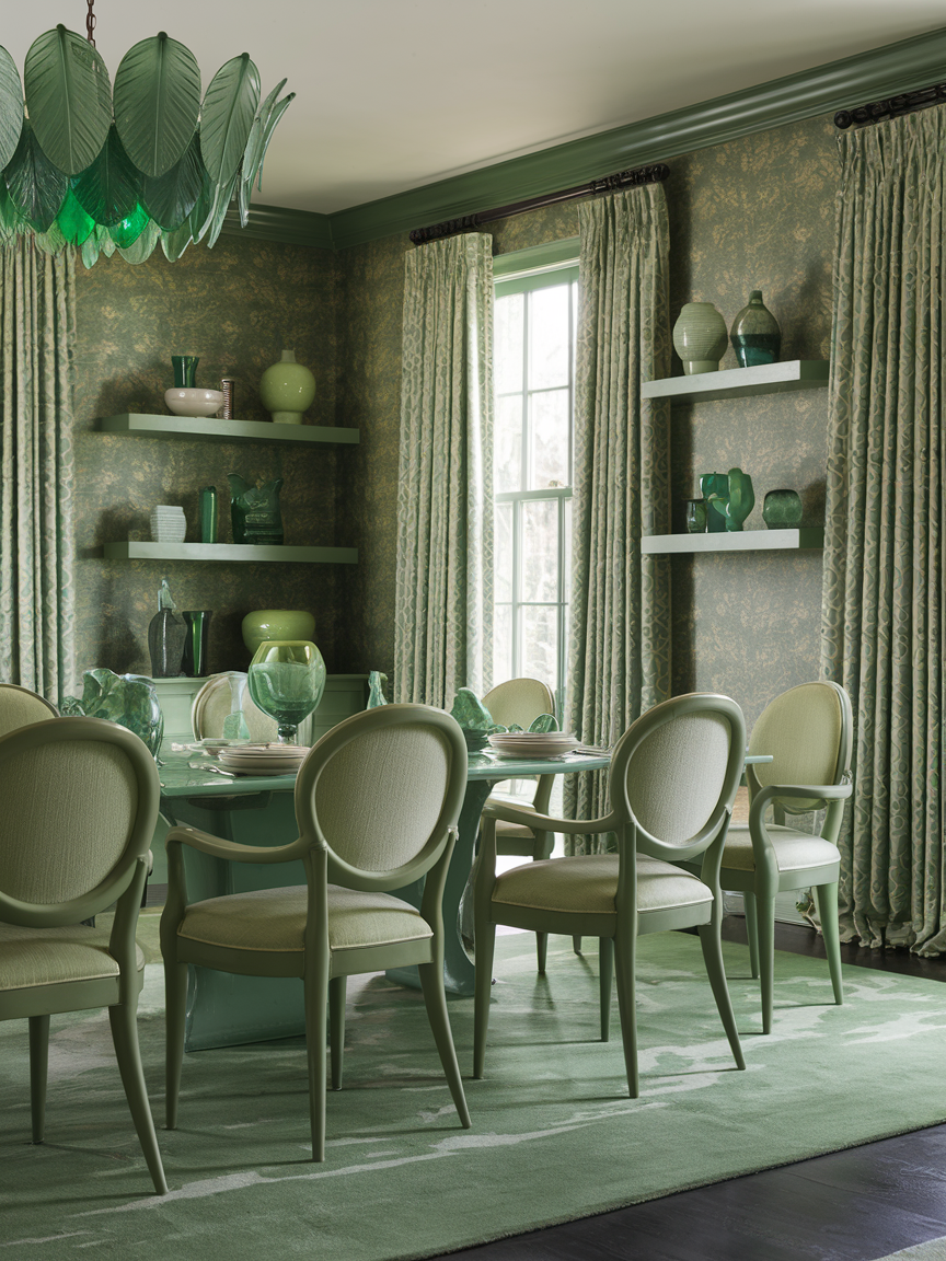 * In the end, a well-designed green dining room should feel like a perfect blend of freshness and sophistication. By focusing on harmony, texture, and intentional styling, you can create a space that not only looks beautiful but also enhances every dining experience with a sense of warmth and timeless appeal.