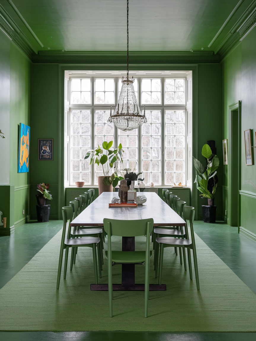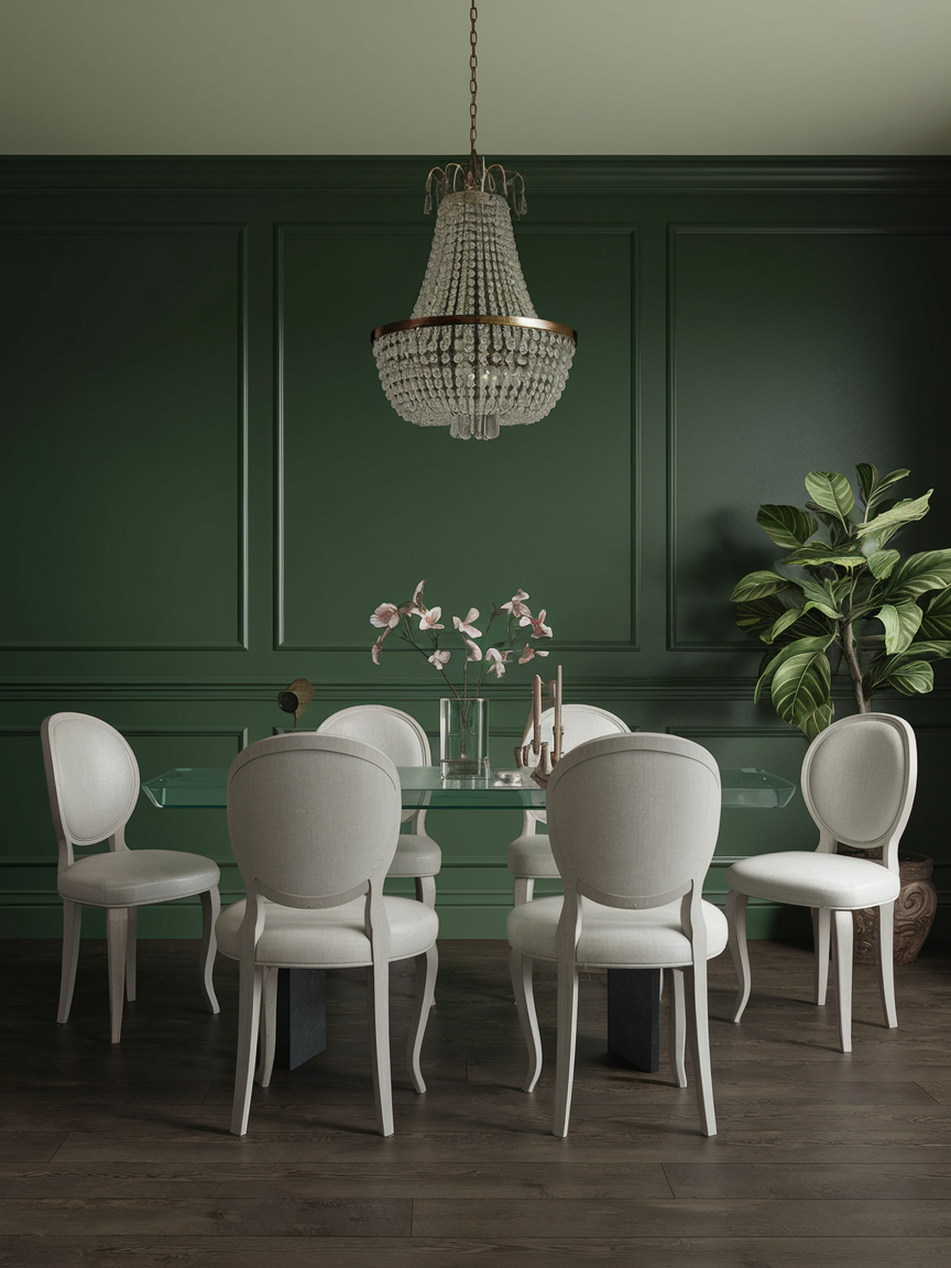 Green has a unique ability to bring both richness and freshness into a dining room, creating a space that feels grounded, elegant, and naturally inviting. From deep emerald hues to soft sage and muted olive tones, green introduces a sense of calm while still offering depth and character. It’s a versatile color that works beautifully across a variety of styles, from modern and minimalist to classic and traditional interiors.