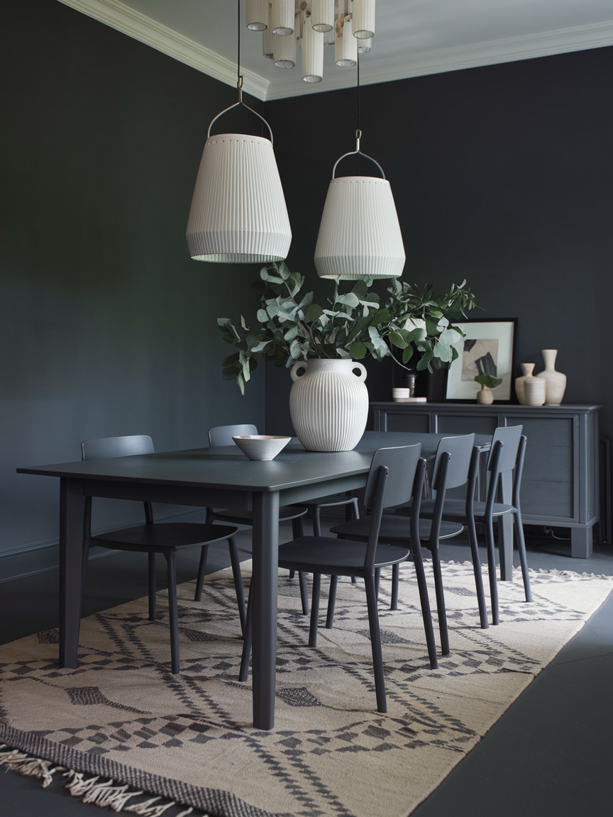 15. Dark Grey Dining Rooms Balanced with Light Accents