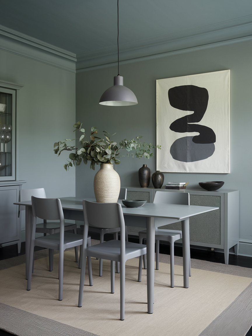 Using multiple shades of grey within one dining room creates a layered, visually rich environment. Combining light grey walls, mid-tone furniture, and darker grey accents adds depth without overwhelming the space. This approach prevents monotony while keeping the palette cohesive. Texture becomes especially important—mixing matte finishes, soft fabrics, and natural materials ensures the room feels inviting. Warmer grey undertones work best for dining rooms, especially when paired with wood or warm metal accents. Layering grey tones thoughtfully results in a space that feels curated, balanced, and comfortable rather than cold or overly minimal.