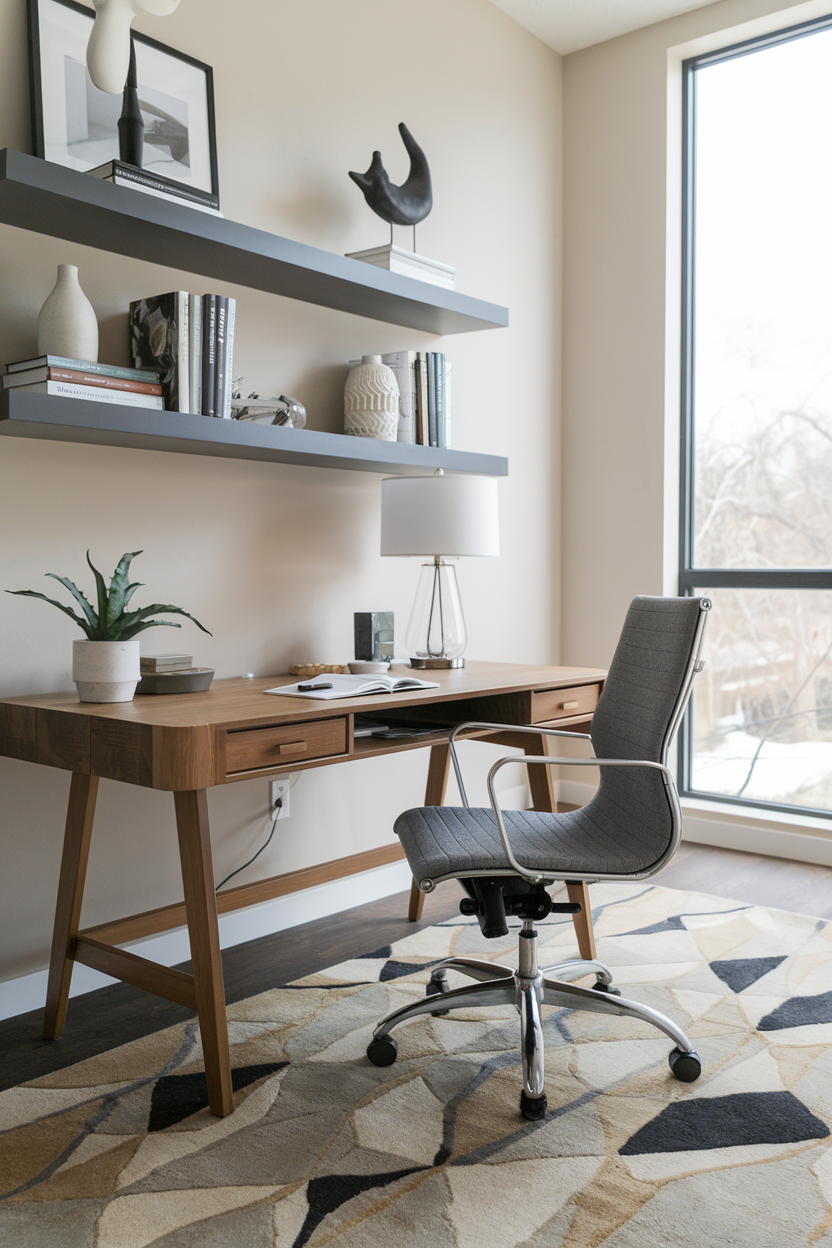 A stylish rug can anchor your workspace, adding warmth and texture to your home office. Choose a rug that complements your office’s color palette and design style, whether that’s a neutral, plush area rug or a vibrant, patterned rug that adds visual interest. A rug can also help define your desk area and make it feel more like a cozy retreat. Plus, it provides a soft surface to stand on, which can be especially useful for standing desks.