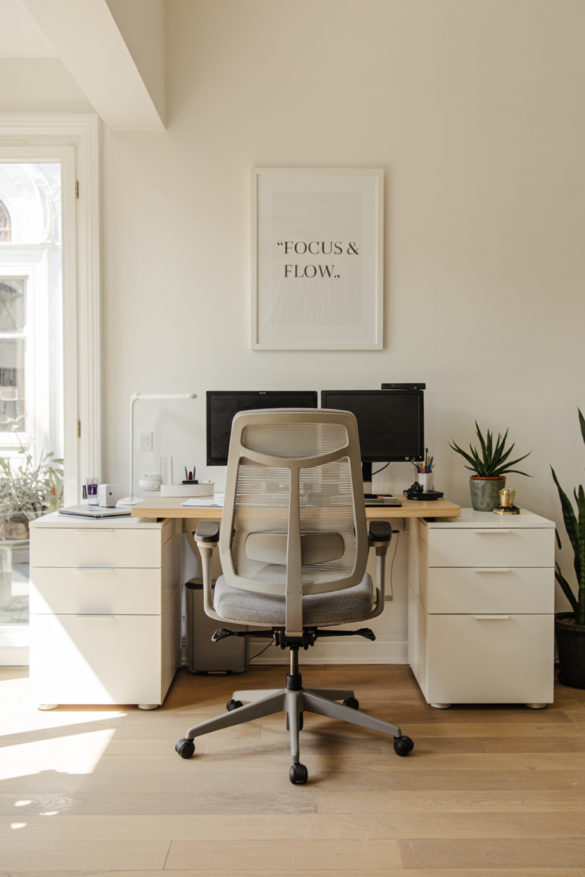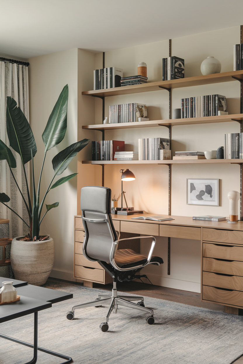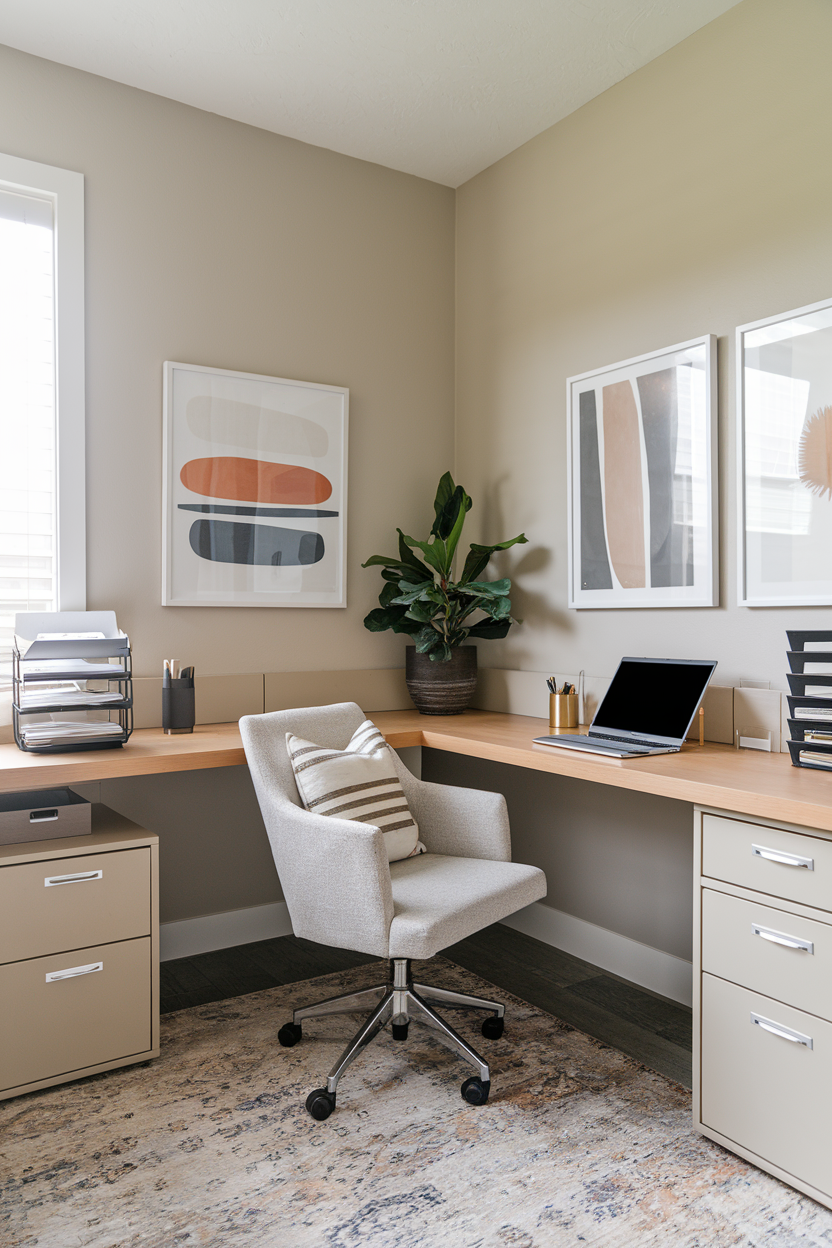 Starting with a neutral color palette helps create a calm and focused environment, which is essential when working long hours. Colors like soft whites, light grays, and beiges are known for promoting concentration and peace. Neutral walls act as a blank canvas, allowing you to play with pops of color in your decor and accessories without overwhelming the space. Plus, neutral shades are timeless and easy to update when you want to refresh the room’s look.