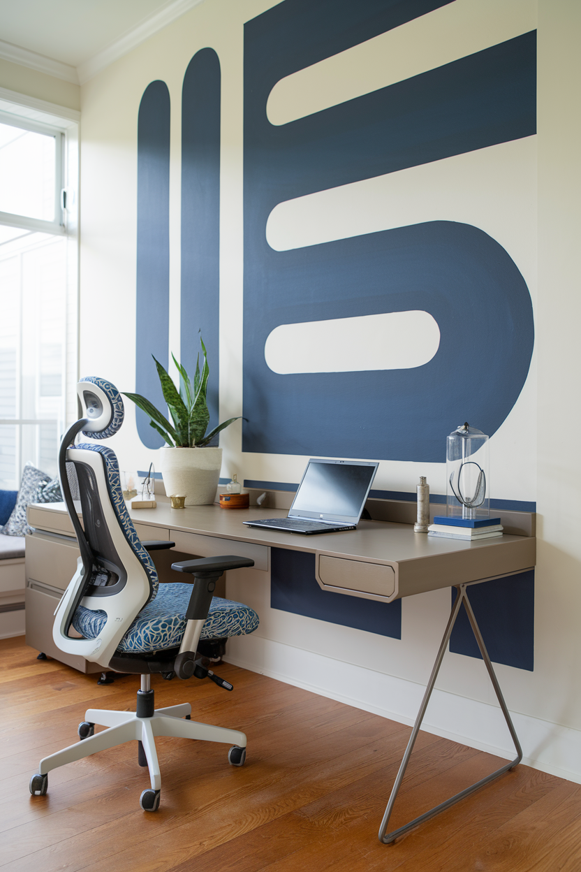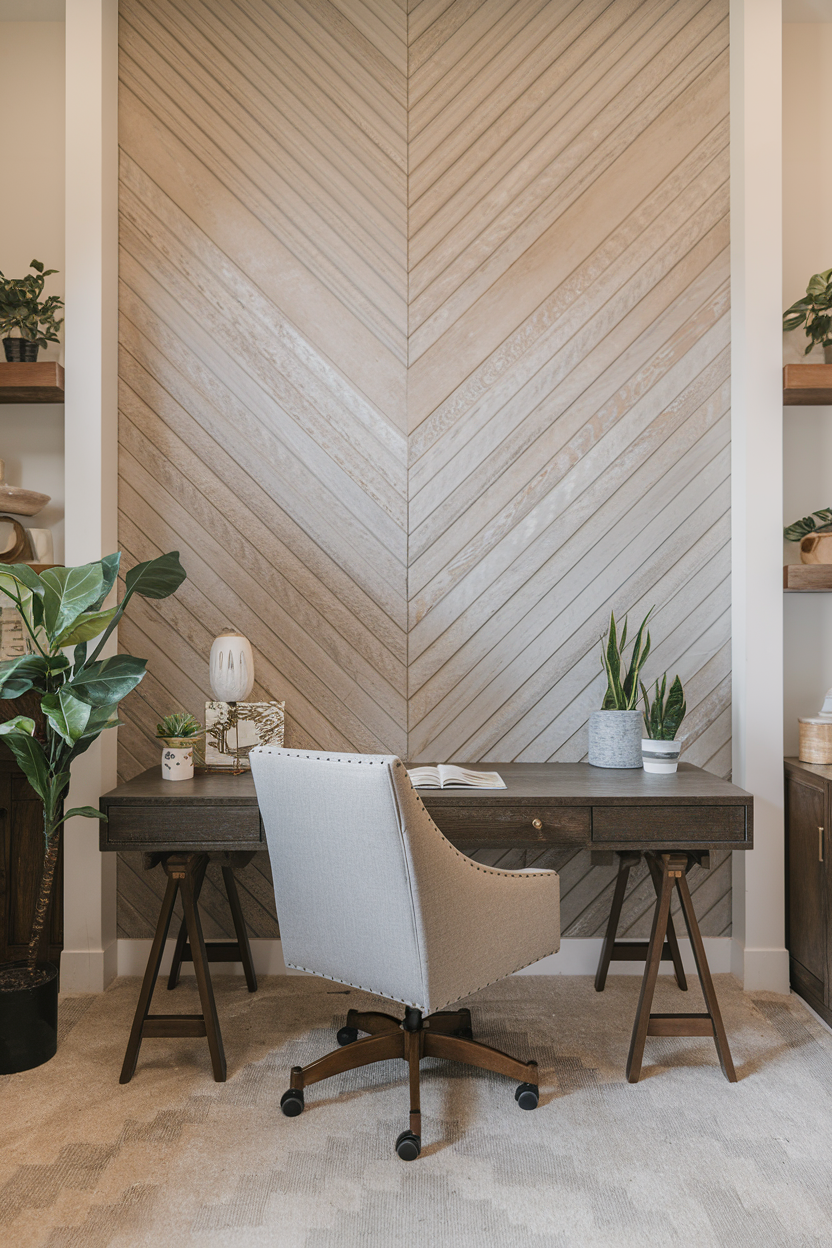 A statement wall can instantly transform your home office, giving it character and depth. Whether you choose bold paint colors, patterned wallpaper, or a textured wall treatment like shiplap or exposed brick, creating a feature wall adds a focal point to the room. It can help define the workspace and give the room a personalized, creative vibe. You can even hang oversized art pieces or a gallery wall to further enhance the wall and reflect your personality.