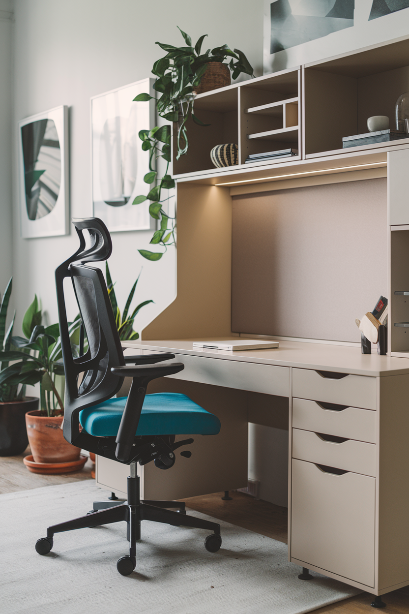 A comfortable chair is essential for maintaining good posture and avoiding back pain during long hours at your desk. Look for an ergonomic chair that provides proper lumbar support and adjustable features like height and armrests. Choose a style that complements the room’s aesthetic, whether it’s a sleek, modern chair or a plush, vintage-inspired seat. Adding a cushion or a lumbar pillow can also help improve comfort, making your office a more enjoyable place to work.