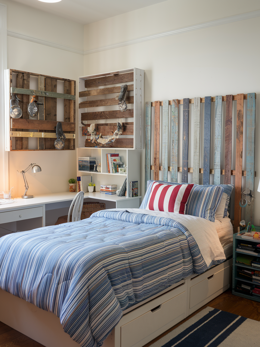 A stylish headboard can define your bed area and act as a statement piece. Consider DIY options like fabric panels, wooden boards, or even a tapestry. Headboards make the room feel cohesive and intentional, transforming a plain dorm bed into a focal point. Creative headboards also provide extra support when sitting up in bed to read or study.