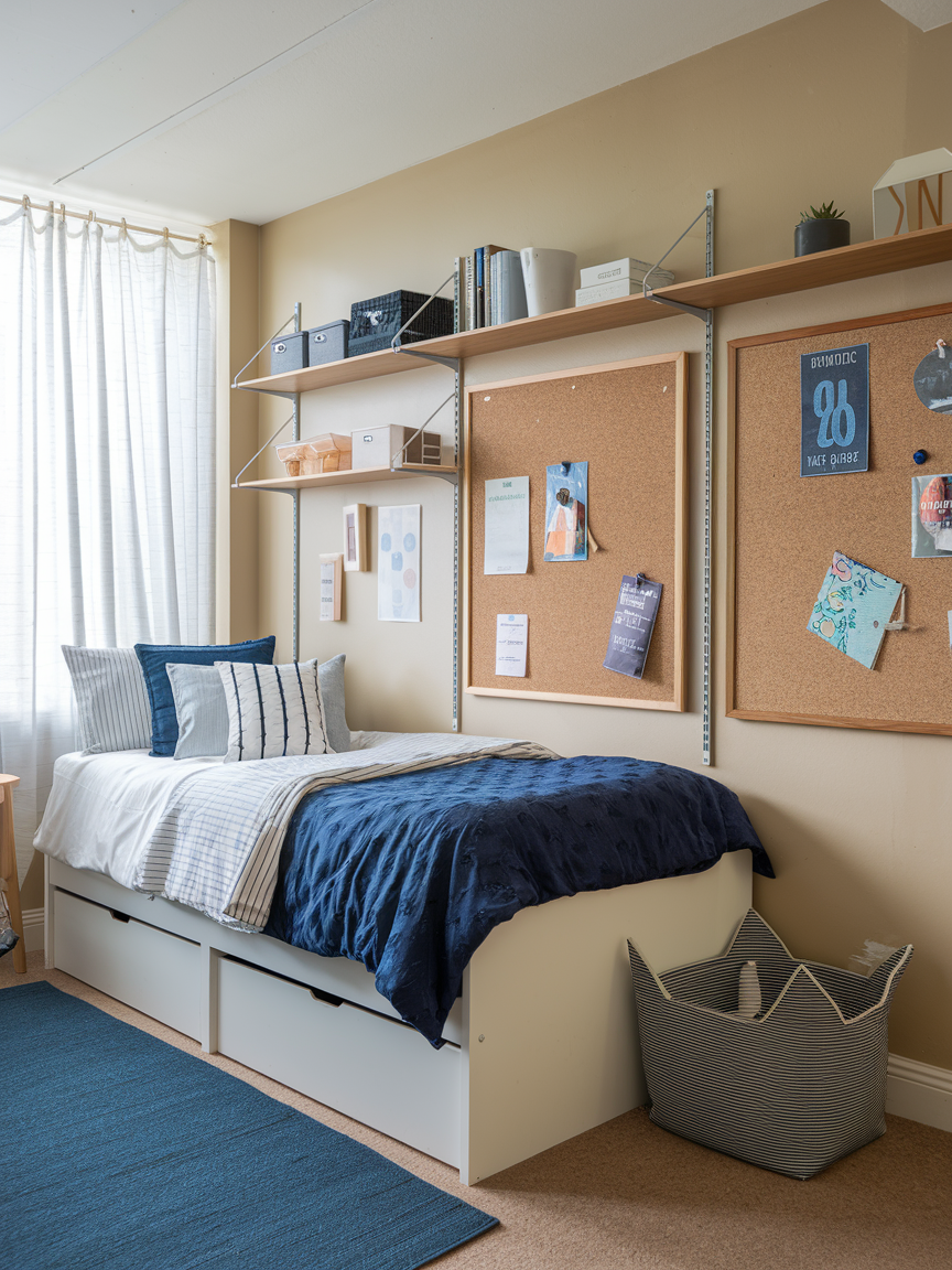 Bulletin boards are functional and decorative. Use them to pin schedules, reminders, photos, or inspirational quotes. They help you stay organized while adding a personal touch to your space. Choose corkboards, magnetic boards, or creative DIY designs for versatility. This keeps important papers visible and prevents your desk from becoming cluttered. A visually organized space boosts productivity and makes your dorm feel intentional and curated.