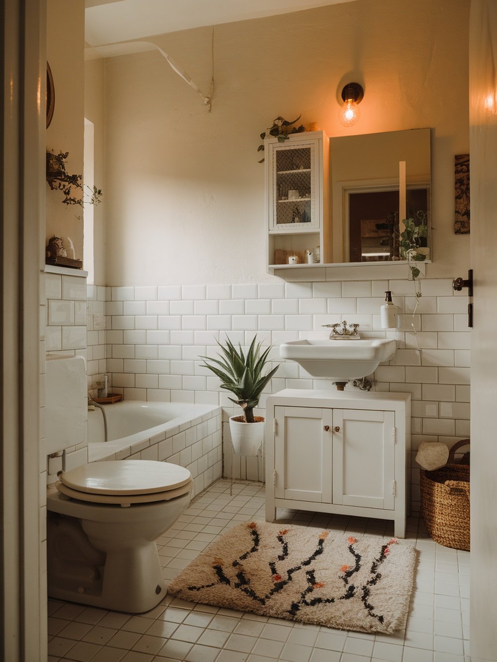 With its timeless appeal, this bathroom proves that vintage white fixtures can bring warmth and character to any space. Whether you’re renovating or just looking for inspiration, this design is a perfect example of how to achieve a clean aesthetic with a nod to the past.