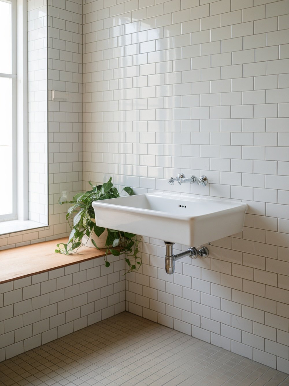 Natural elements can enhance the overall aesthetic, promoting a sense of calm and relaxation. This bathroom is a great example of how greenery can elevate a simple white space into a serene oasis.