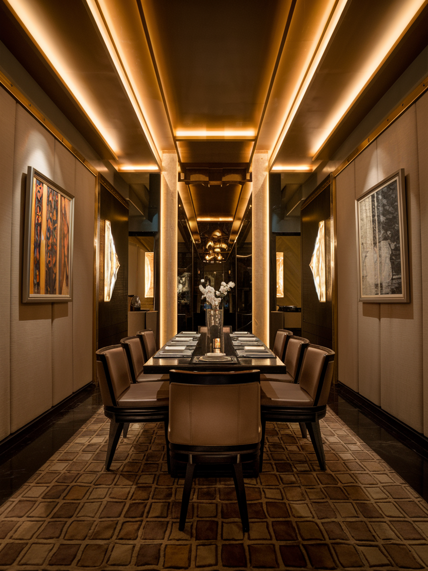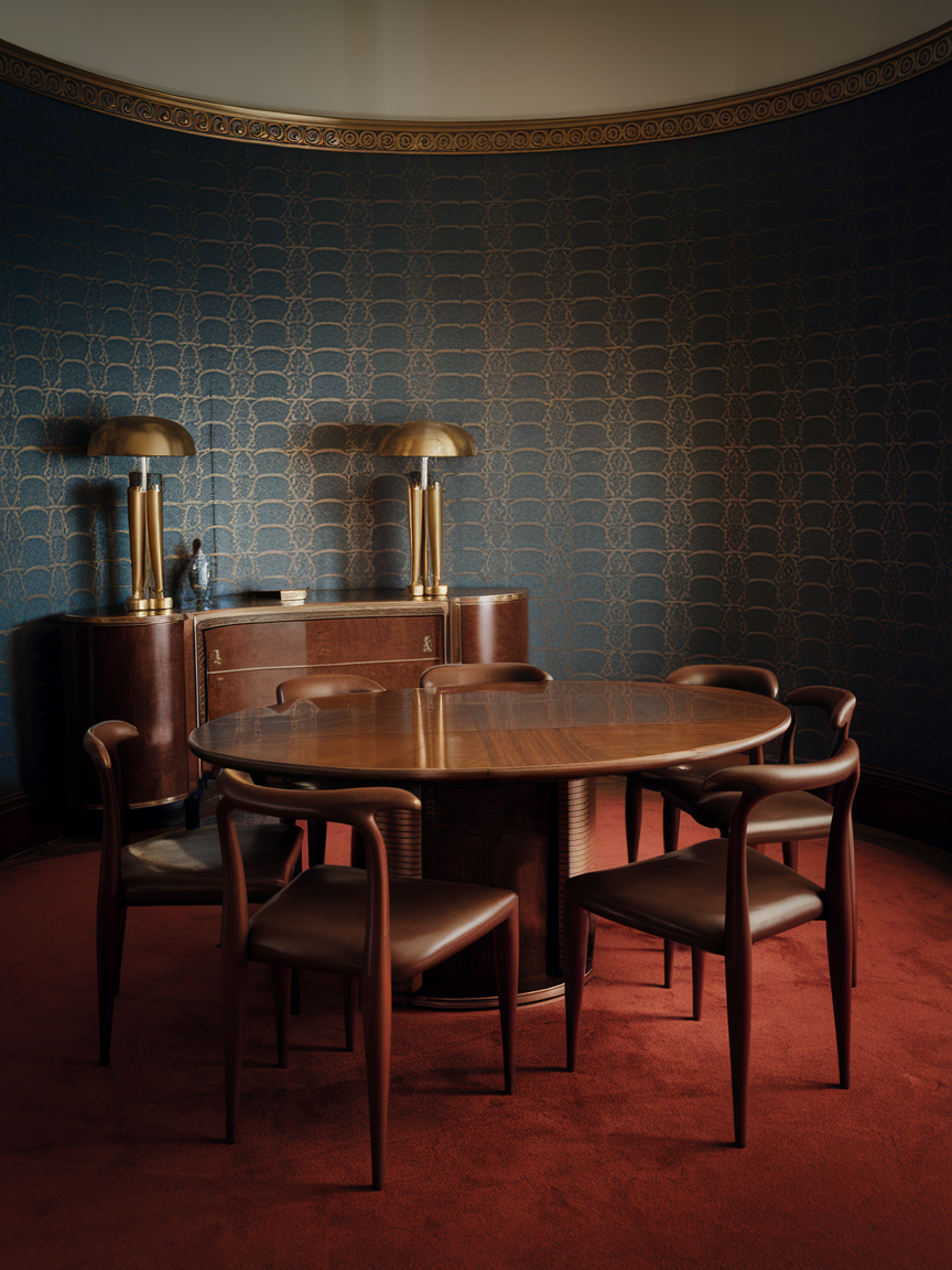 Gleaming metallic accents, mirrored surfaces, rich color palettes, and statement lighting create a striking atmosphere that balances opulence and comfort. Thoughtful layering of textures, patterns, and furnishings transforms a simple meal into a visually stunning experience that sparks conversation and admiration. Art Deco is all about making a statement while keeping functionality at the forefront.