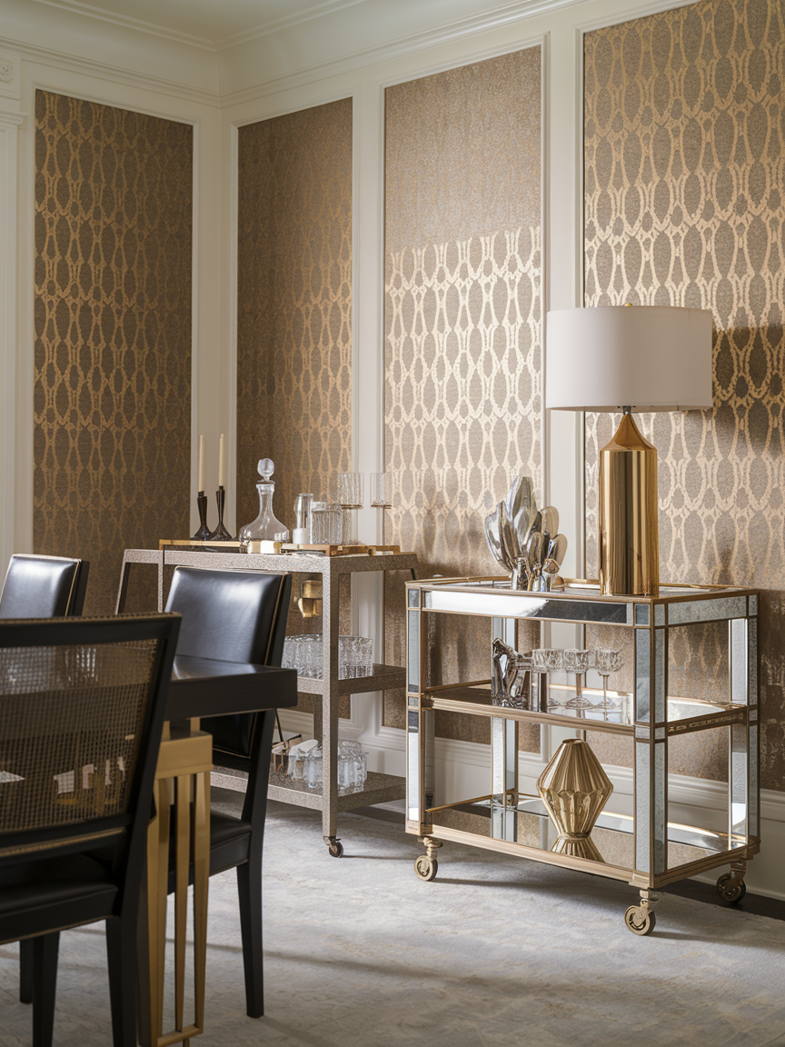 Metallic wall panels or trims in gold, silver, or bronze can instantly elevate your space. Use them to highlight architectural details or as accent walls to create dimension. These reflective surfaces interact beautifully with lighting, creating a dynamic, luxurious feel that aligns perfectly with vintage glamour. Metallic panels are a subtle way to add depth and sophistication without overwhelming the room.