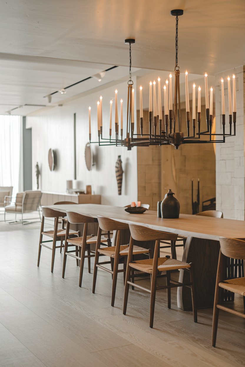 For a timeless, old-world charm, go with a candle-style chandelier. Designed to resemble traditional candle holders, these fixtures add romance and nostalgia to your dining room. Wrought iron or antique brass finishes enhance the vintage feel, especially when paired with rustic furniture or classic molding details. Use dimmable bulbs to mimic the soft flicker of real candlelight.