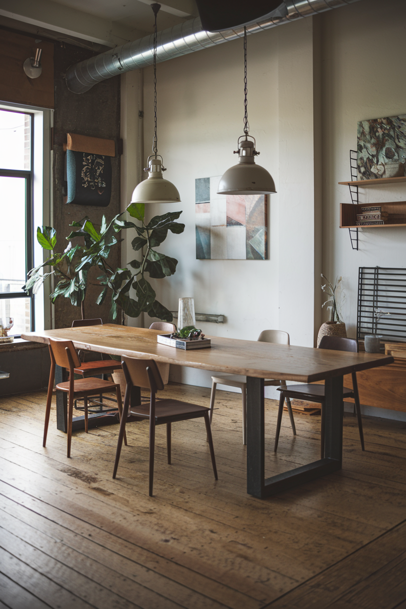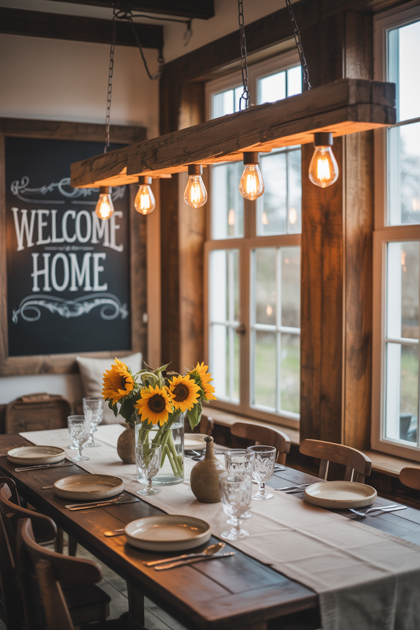 Beam pendants, often made of reclaimed wood and paired with vintage-style bulbs, bring warmth and rustic charm to your dining space. This style is especially popular in farmhouse and country-style homes. The exposed wood adds an organic touch, while the linear design ensures ample lighting across a long dining table. Accent the look with natural textures like linen and jute.