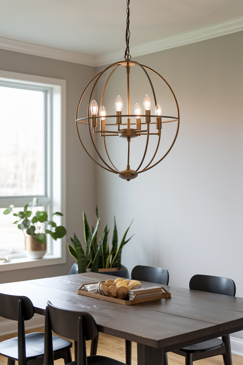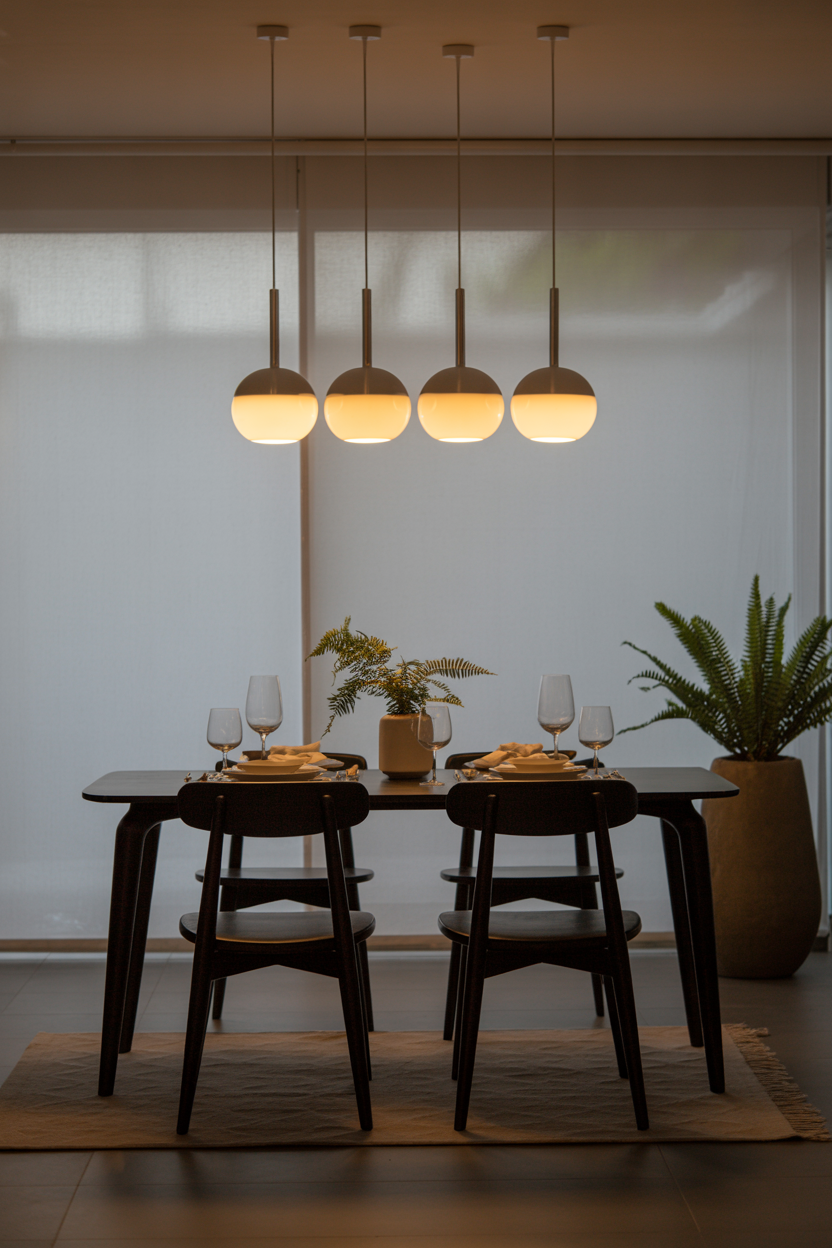 Globe pendant lights offer a clean, modern aesthetic that works beautifully over a dining table. Their spherical shape casts even light across the table, creating a welcoming and contemporary vibe. You can hang a single oversized globe or opt for a row of smaller ones to match the length of your dining setup. Frosted glass globes provide a soft, diffused glow, while clear glass offers a crisper, more defined illumination.