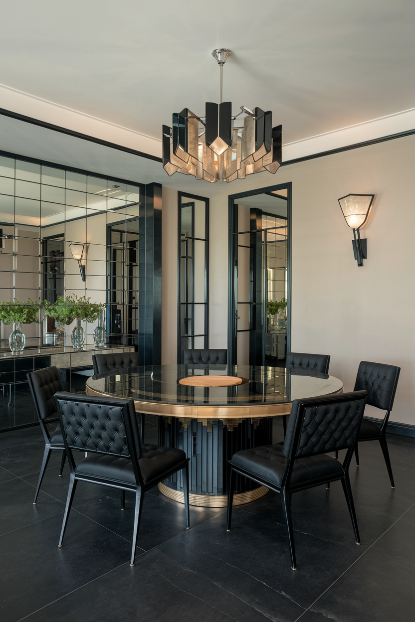 Art Deco lighting features geometric shapes, luxurious materials, and a sense of glamour. Think polished metals, frosted glass, and layered or stepped designs that recall 1920s and ’30s elegance. These fixtures bring a refined edge to any dining room and pair well with bold colors, mirrored furniture, or velvet upholstery. It’s a great choice if you want your dining space to feel both dramatic and sophisticated.