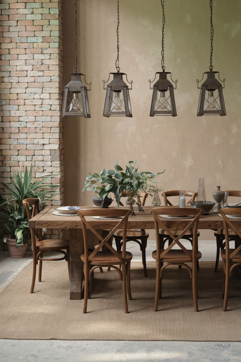 Channel countryside charm with rustic lantern-style lighting. These fixtures often feature blackened metal frames, vintage-inspired bulbs, and a weathered finish that adds warmth and texture. They work particularly well in farmhouse and cottage-style interiors, complementing wood finishes and soft, earthy tones. Lantern lights can hang individually or in a group to add dimension to your lighting scheme.