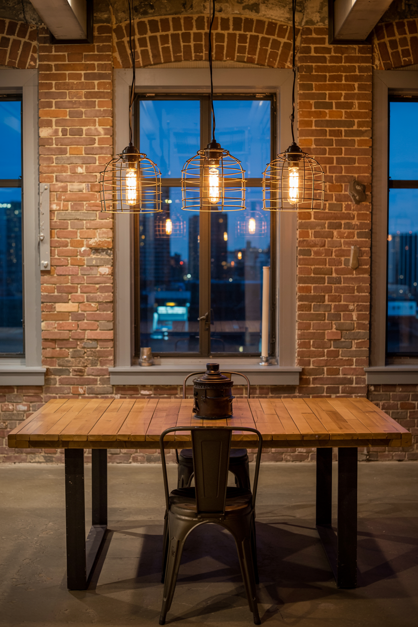 Industrial-style cage lights bring a raw, urban edge to your dining space. Often constructed from dark metals and exposed bulbs, they’re ideal for loft-style or modern farmhouse interiors. Hang them low over a reclaimed wood table to amplify their gritty appeal. Adding Edison bulbs can further enhance the vintage industrial look, casting a warm and nostalgic glow.