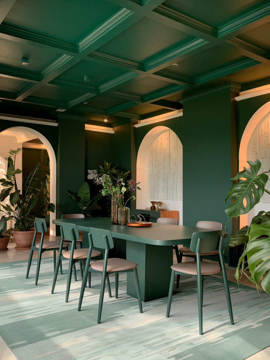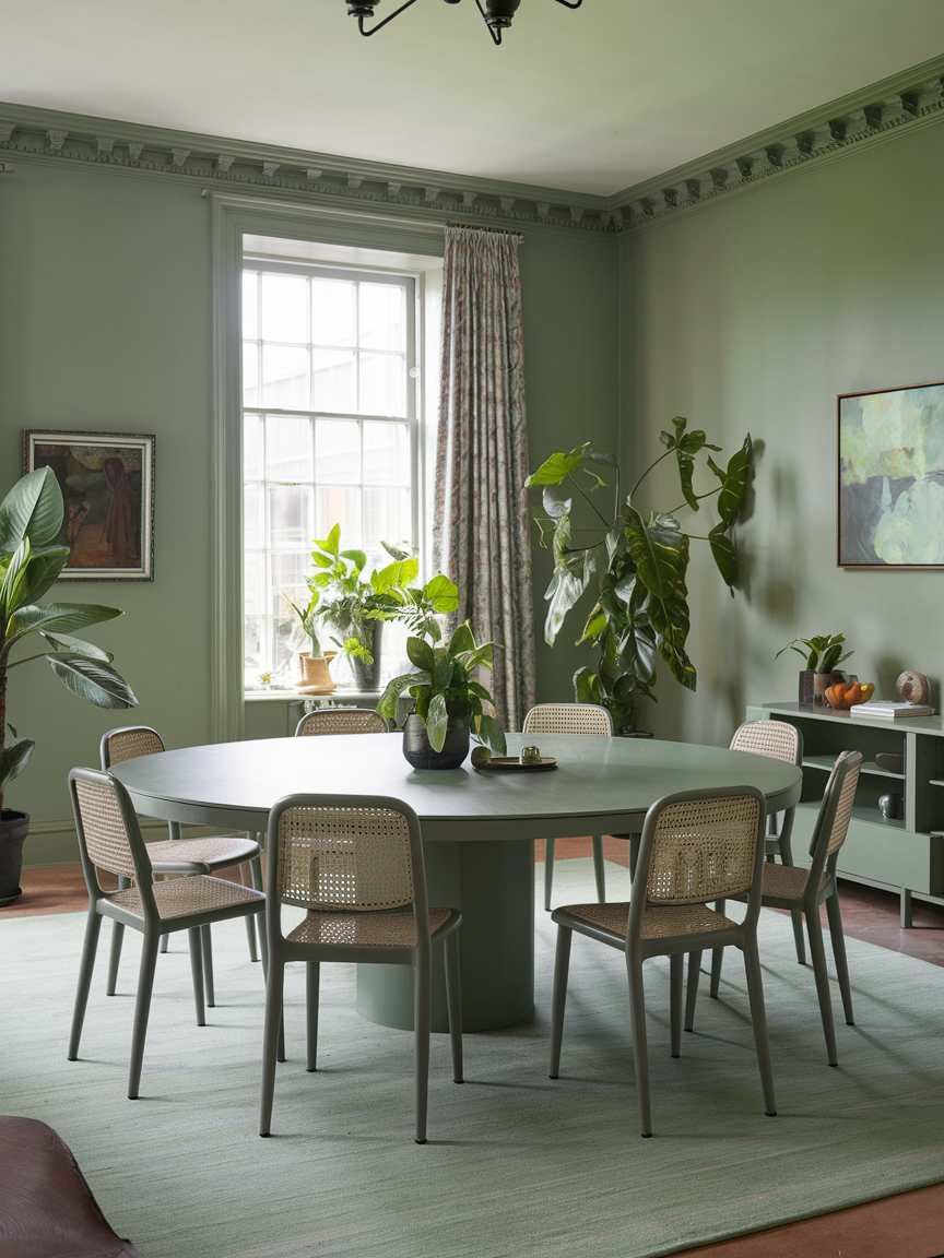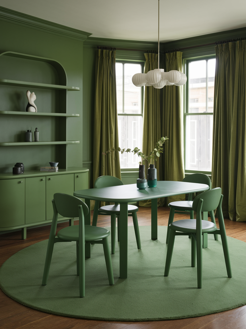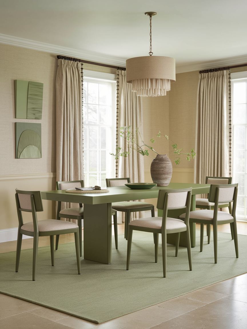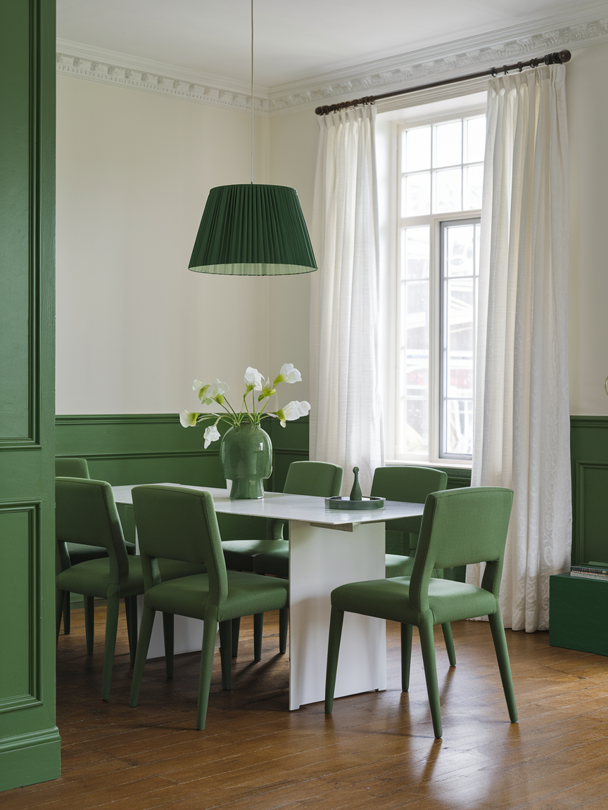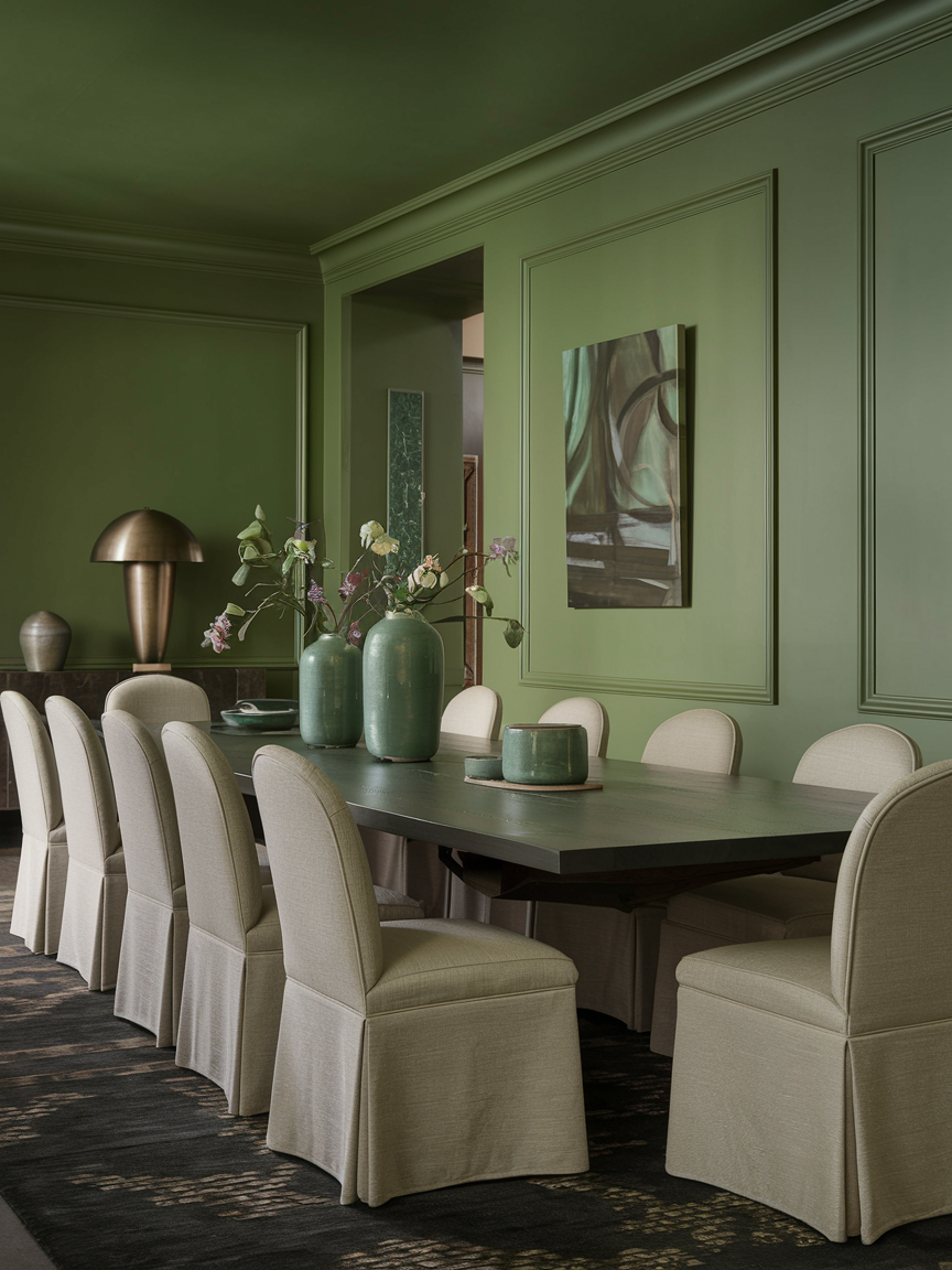 Green brings a sense of calm sophistication to dining rooms, offering a perfect balance between natural beauty and refined design. This timeless hue is explored through a variety of inspiring interiors that transform ordinary dining areas into stylish destinations for meaningful conversations and shared meals. Soft, earthy tones create a soothing ambiance, while deeper greens introduce depth and drama that feel both luxurious and welcoming.