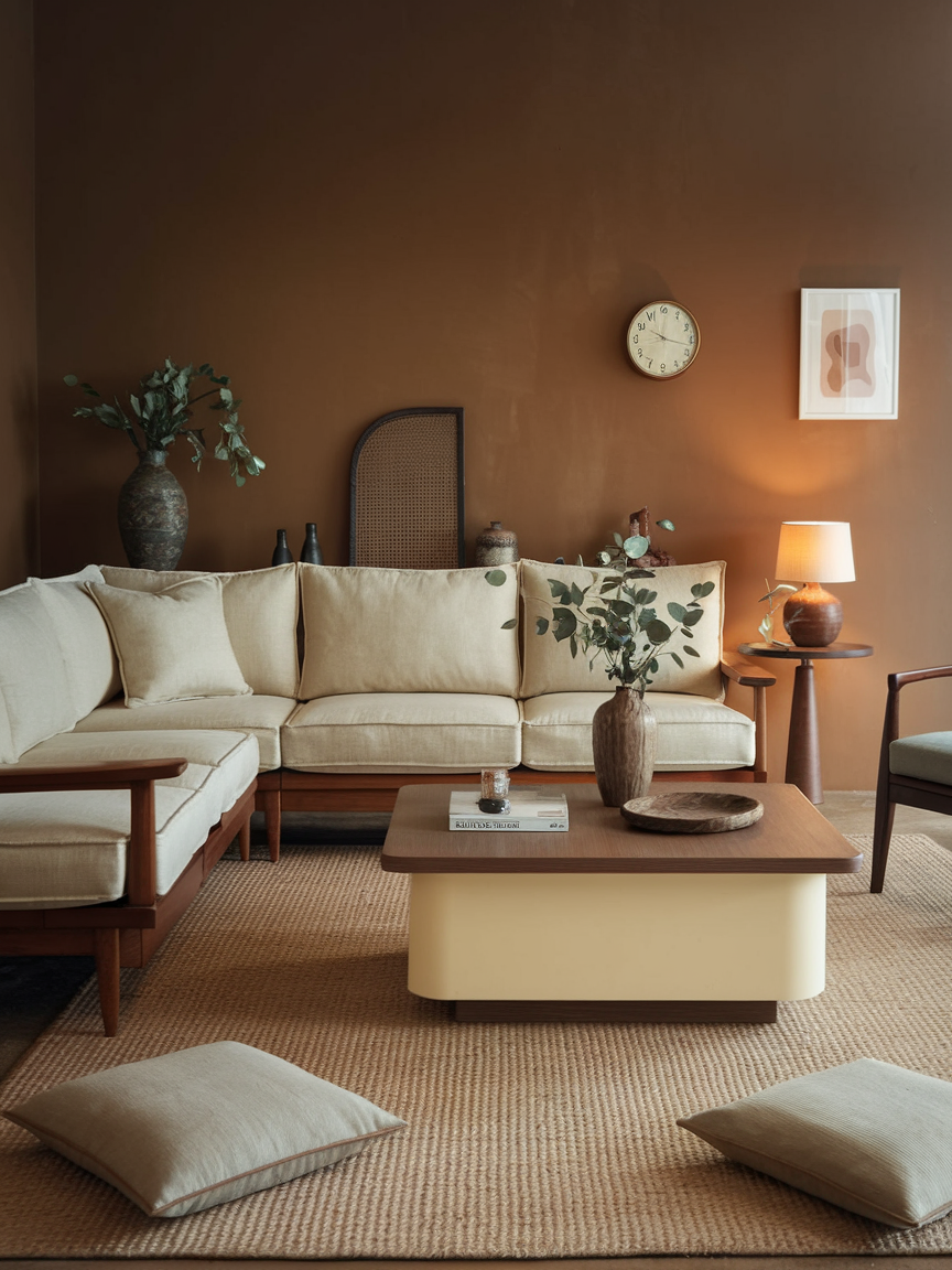 Mocha brown brings warmth and coziness like no other. It creates a grounded atmosphere that feels intimate and inviting, making it ideal for rooms where you love to curl up with a book or binge-watch your favorite series. Pair it with cream or beige accents for a classic look, or add pops of burnt orange or olive green for a richer feel. This color works especially well in rooms with good lighting, as it absorbs light beautifully without making the space feel too dark.