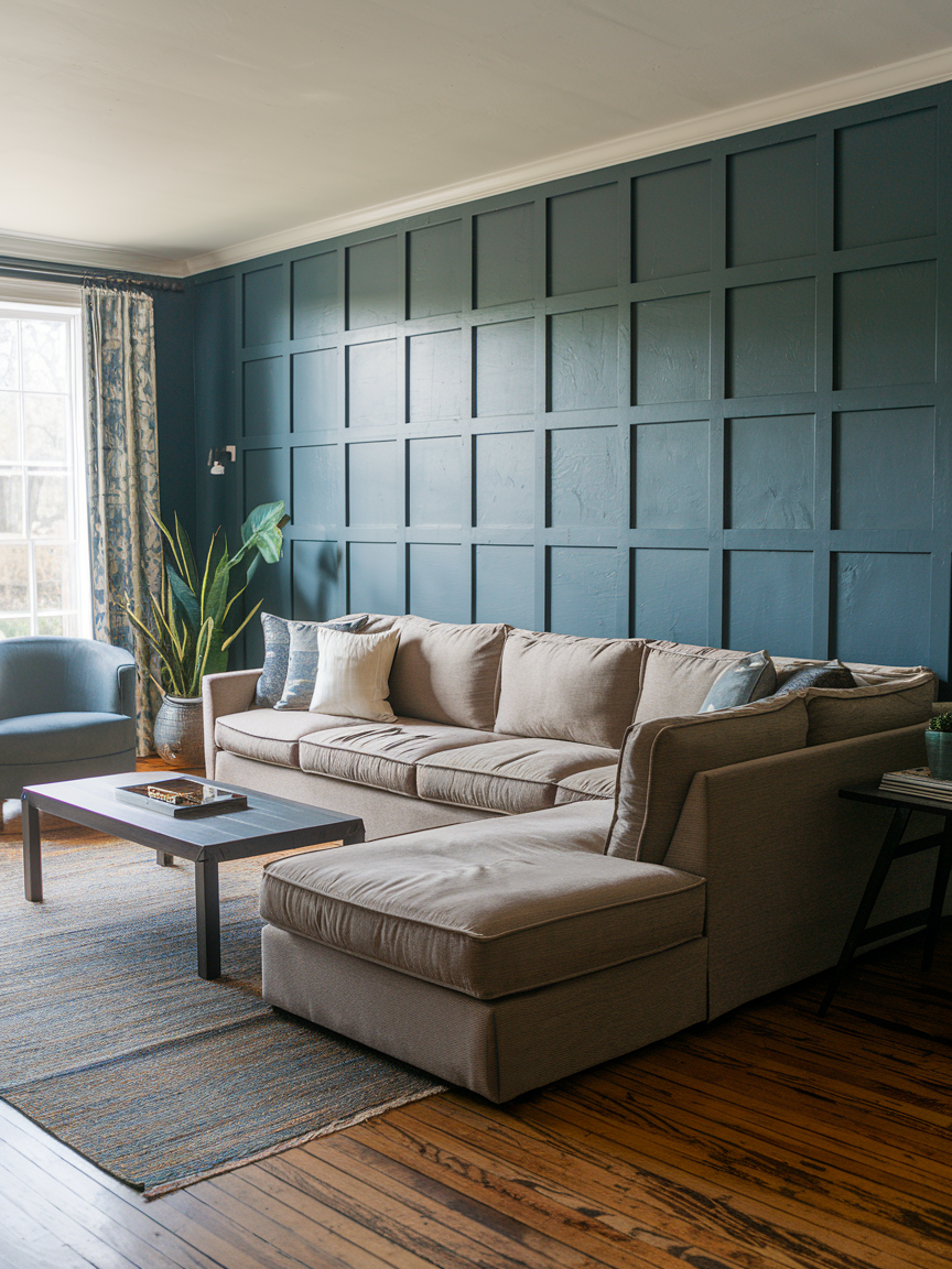 If you want your living room to look like it belongs in a luxury hotel, navy blue is your secret weapon. It’s rich, moody, and works wonders in making other colors pop—think gold accents, crisp white trim, or bold patterned cushions. Painting your walls navy instantly creates a cocoon-like feeling, perfect for cozy evenings or entertaining guests. Pro tip: pair it with warm wood furniture to balance the cool tones. It’s bold without feeling shouty, which is exactly the sweet spot you want for a stylish yet livable space.