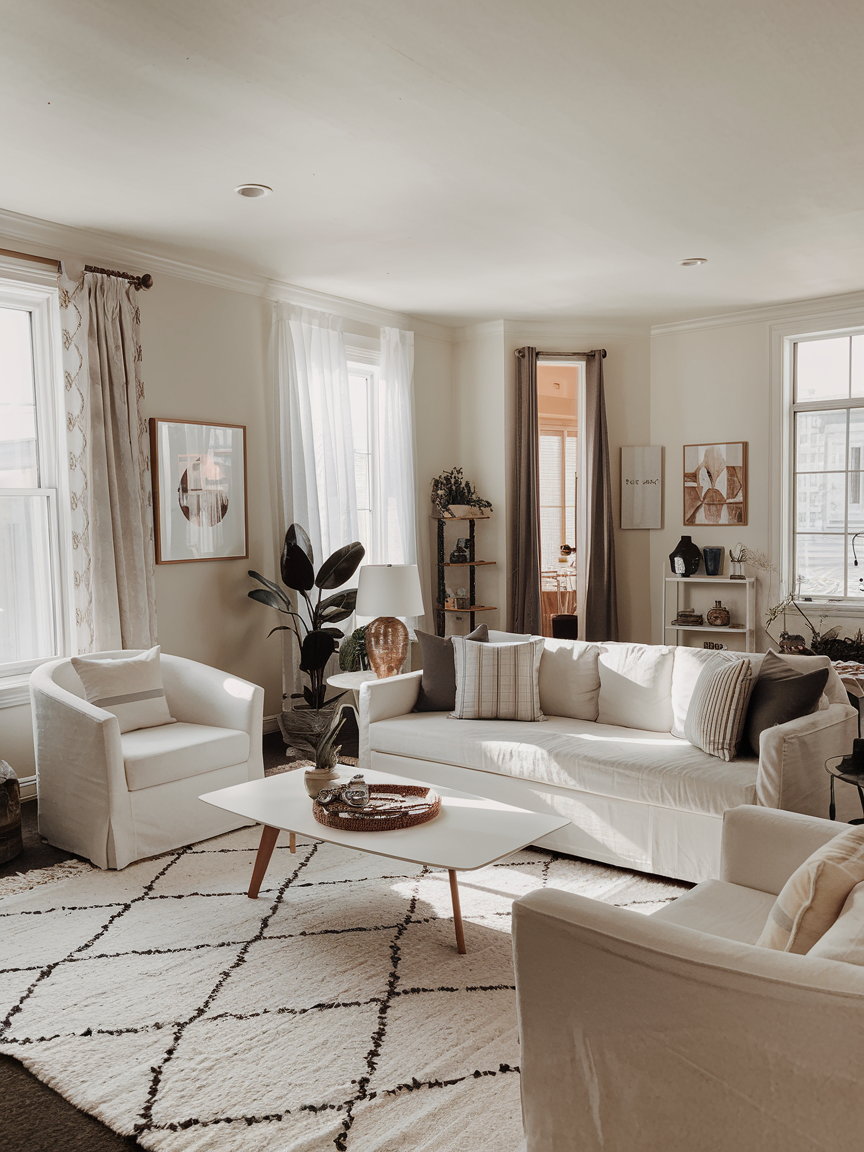 White might sound like the “safe” choice, but when done right, it can feel like the boldest. Crisp white walls create a blank canvas that lets your furniture, art, and décor shine. The trick is to mix textures so it doesn’t feel sterile—think fluffy rugs, woven baskets, and cozy throws. This color reflects light beautifully, making your living room feel more spacious and open. Plus, it gives you the freedom to switch up your color scheme whenever you feel like it without repainting.