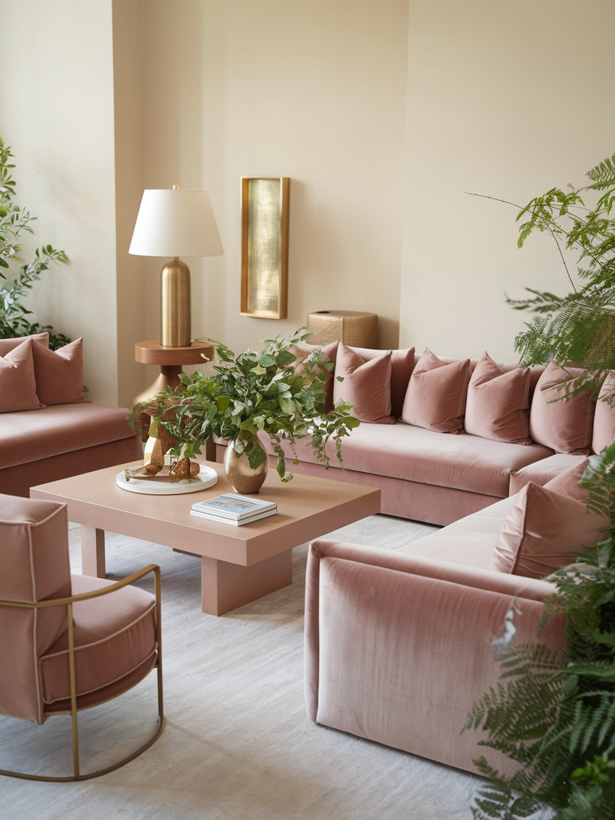 Blush pink doesn’t have to be overly sweet, it can actually feel incredibly sophisticated when you choose a muted tone. This soft, warm hue pairs beautifully with gold accents, cream-colored furniture, and lush greenery. It’s subtle enough that it doesn’t overwhelm the room, yet it still brings a gentle touch of color that feels inviting and personal. Perfect for those who want a hint of warmth without going too bold.